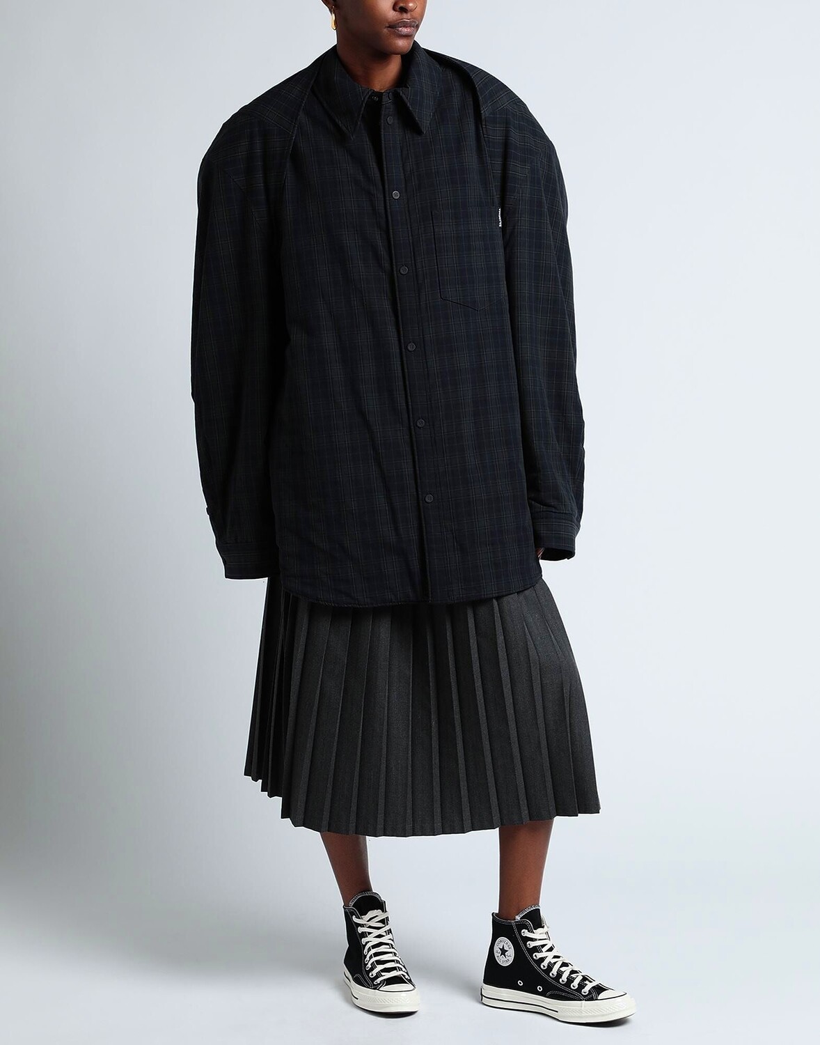 Тканый материал, логотип бренда, узор «тартан», классический воротник, однобортный, длинные рукава, внутренняя набивка, кнопки, один нагрудный карман, комплект из 2 предметов, содержит нетекстильные части животного происхождения, химчистка, нельзя сушить в стиральной машине, не отбеливать, обычная верхняя одежда больших размеров