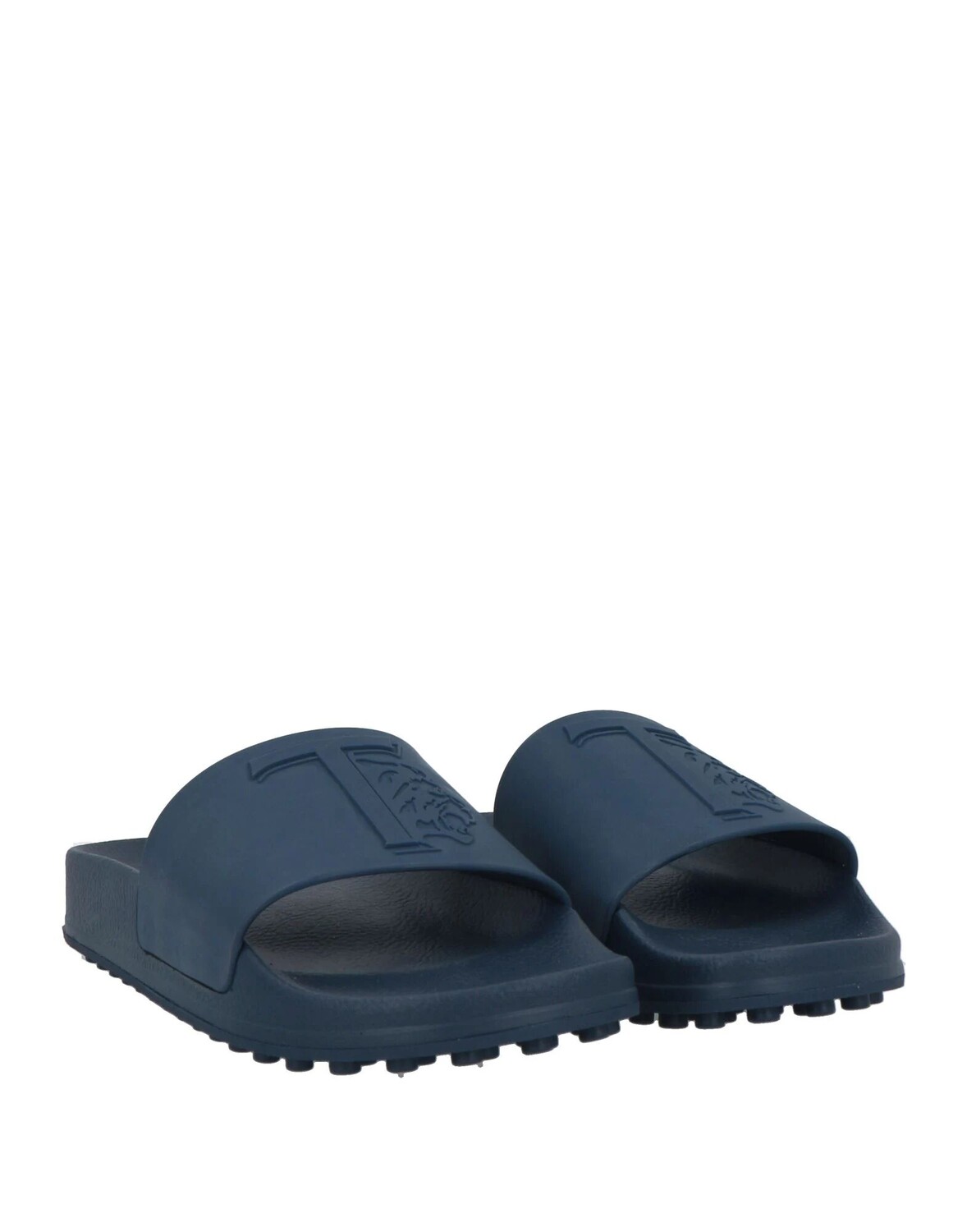 Логотип бренда, одноцветное изделие, резиновая подкладка, скругленный носок, плоская подошва, галька, шлепанцы для бассейна