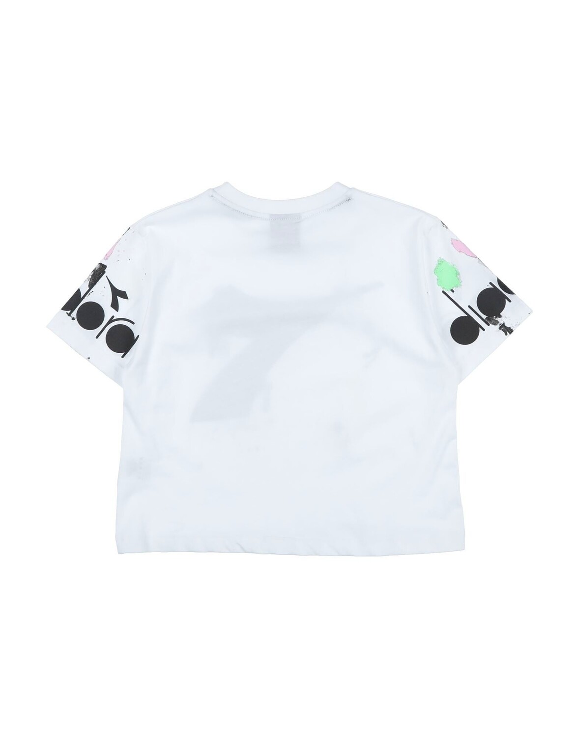Джерси, эффект пятен, логотип бренда, разноцветный рисунок, круглый вырез, короткие рукава, без карманов, стирка при 30°C, не подвергать химчистке, не отбеливать, нельзя сушить в стиральной машине, гладить при температуре не выше 110°C