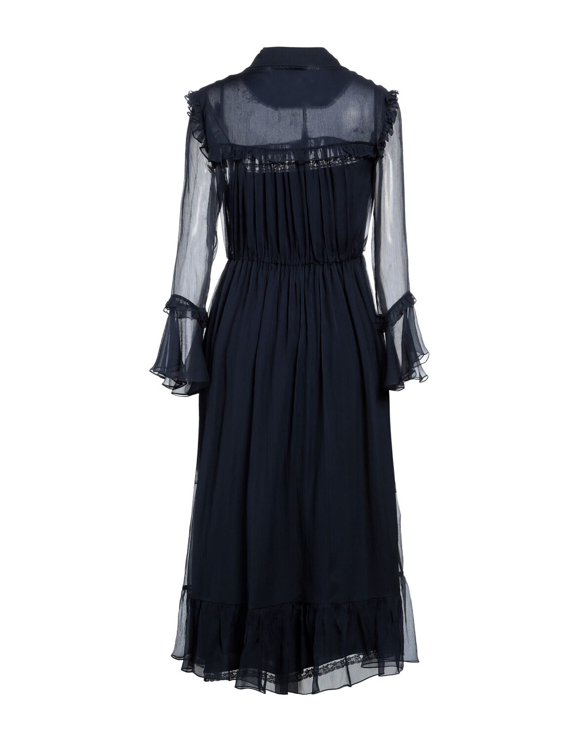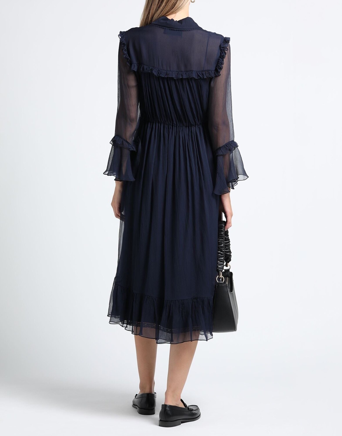 Шифон, оборки, однотонное изделие, воротник «Питер Пэн», длинные рукава, скользящий силуэт, пуговицы, без карманов, подол с оборками, платье-рубашка