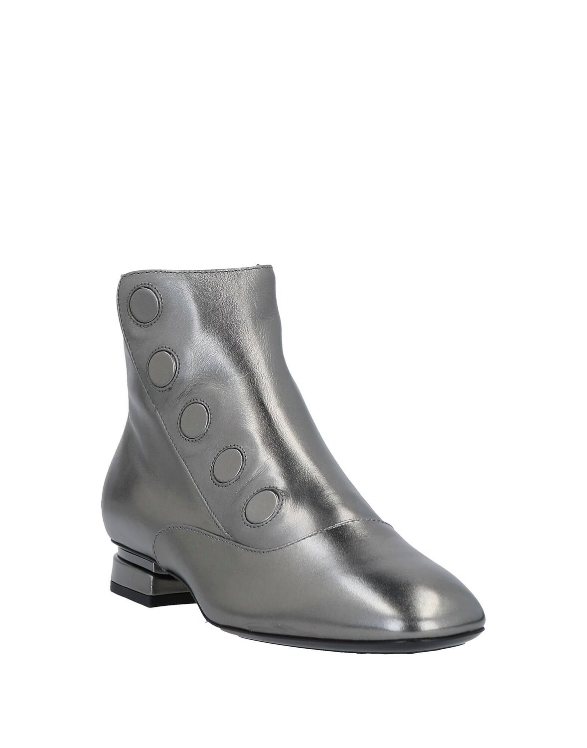 Кожа, эффект ламинирования, без аппликаций, одноцветное изделие, подкладка из кожи, застежка на кнопки, застежка-молния, квадратный носок, квадратный каблук, ребристая подошва, содержит нетекстильные части животного происхождения