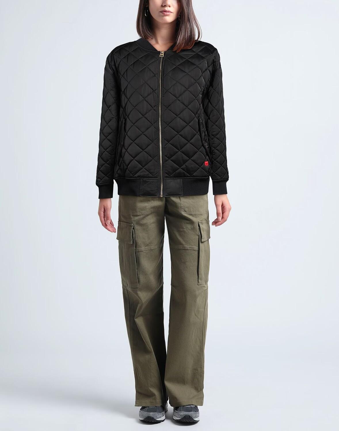 Ткань, стеганая ткань, логотип бренда, одноцветное изделие, круглый вырез, однобортный, длинные рукава, синтетический наполнитель, застежка-молния, множество карманов, химчистка, нельзя отбеливать, нельзя сушить в стиральной машине, бомбер