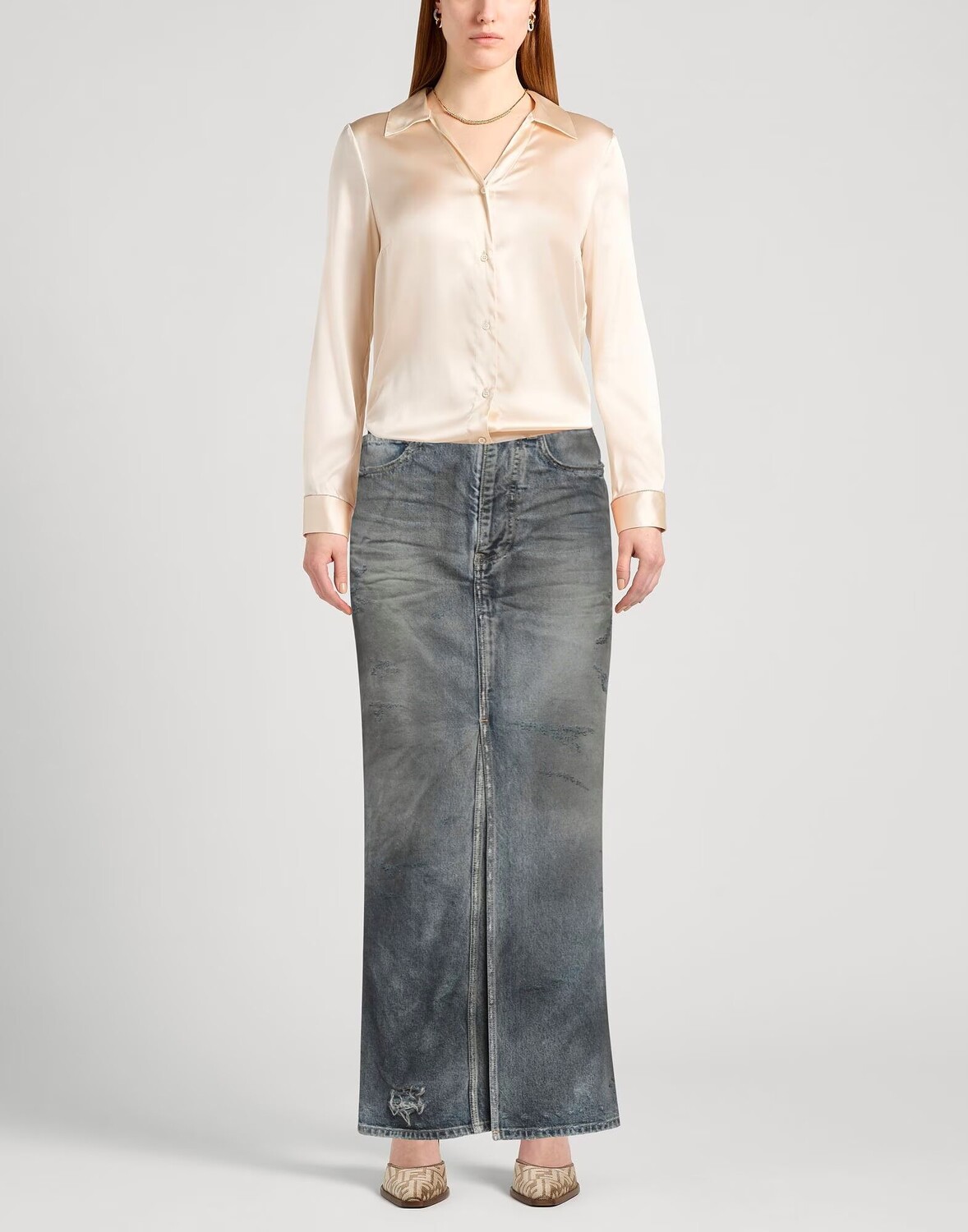 Расклешенная юбка, джинсовая ткань, выцветший, потертый, логотип бренда, одноцветное изделие, средняя стирка, шлевки для ремня, стандартный крой, без подкладки, застежка-молния, 1 пуговица, прорезь спереди, множество карманов, машинная стирка, нельзя отбеливать, нельзя сушить в стиральной машине