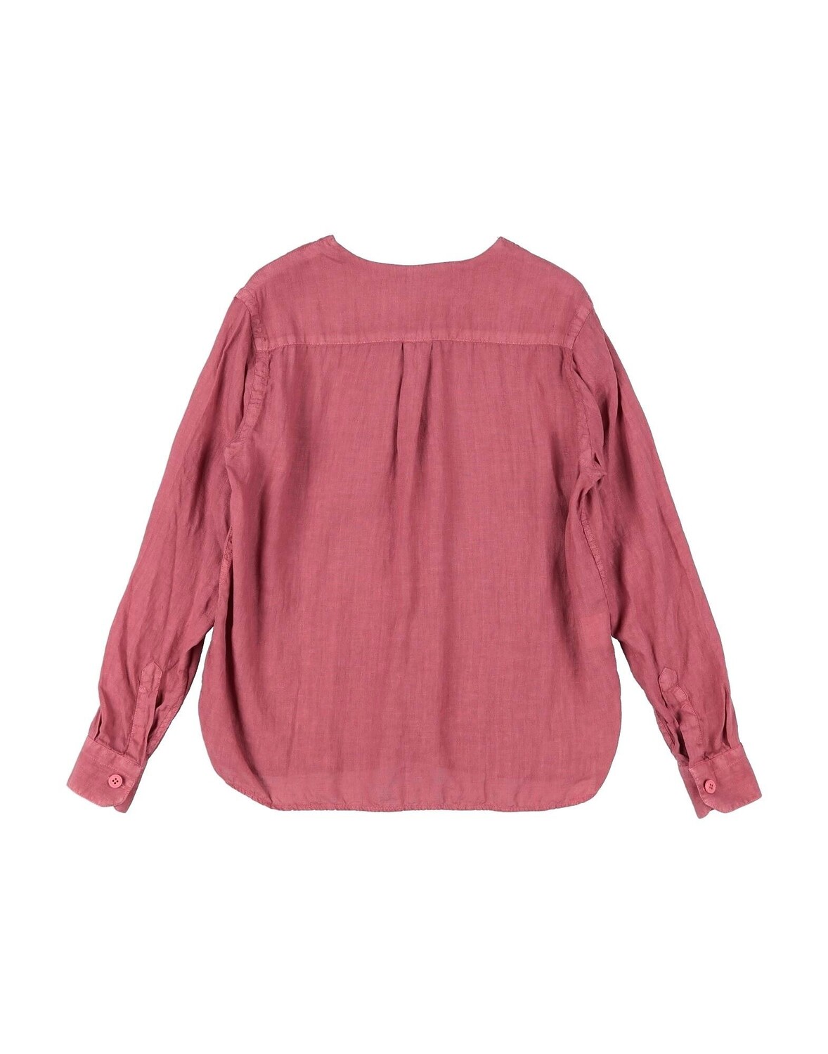 Полотняное переплетение, без аппликаций, одноцветное изделие, круглый вырез, длинные рукава, пуговицы, без карманов, стирка при 30°C, не подвергать химчистке, не отбеливать, нельзя сушить в стиральной машине, гладить при температуре не выше 150°C