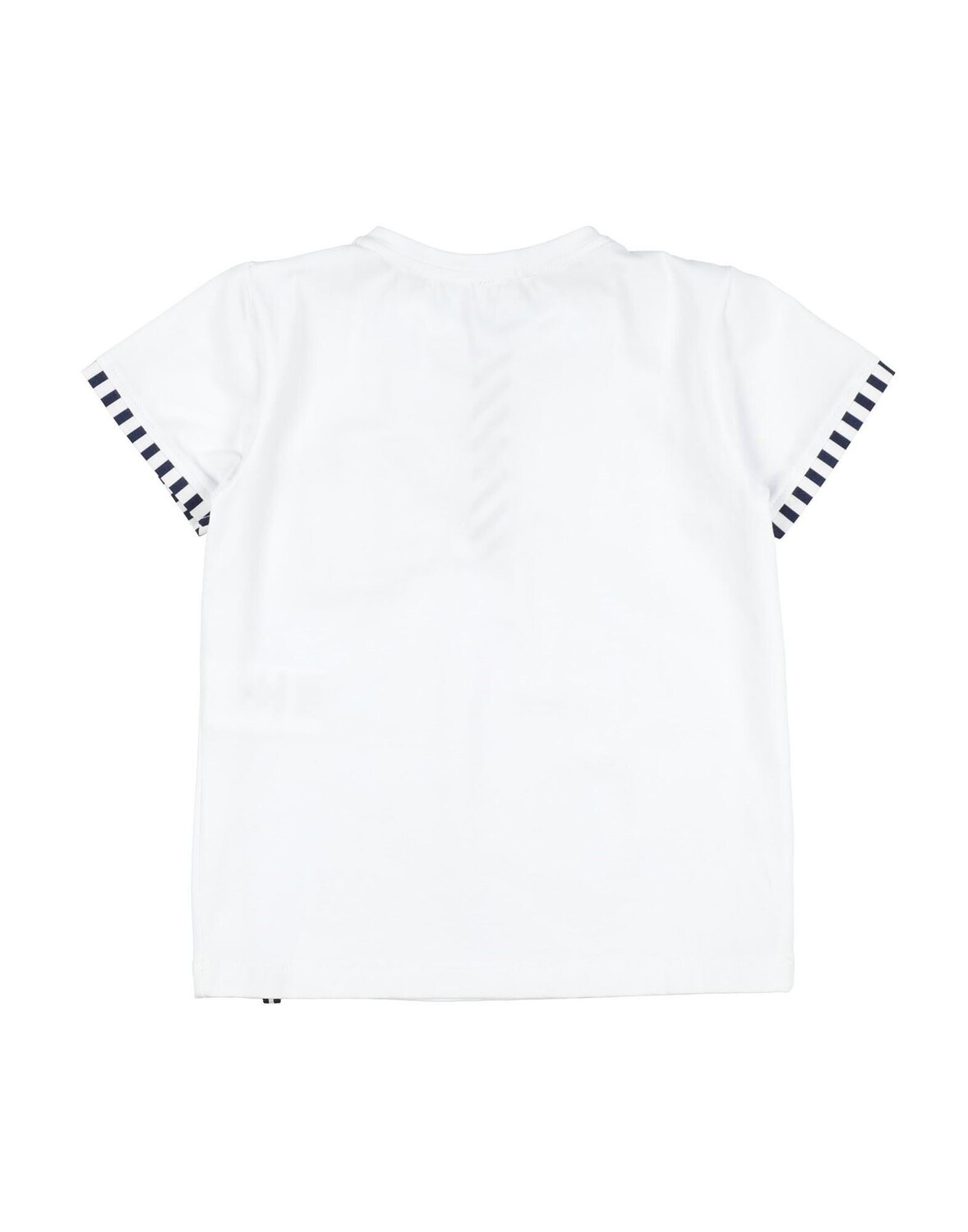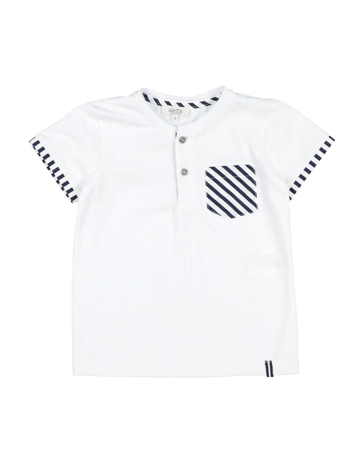 Джерси, без аппликаций, в полоску, двухцветное, круглый воротник, короткие рукава, пуговицы, один нагрудный карман, стрейч, стирка при 30°С, химическая чистка, не отбеливать, нельзя сушить в стиральной машине, гладить при температуре не выше 110°С