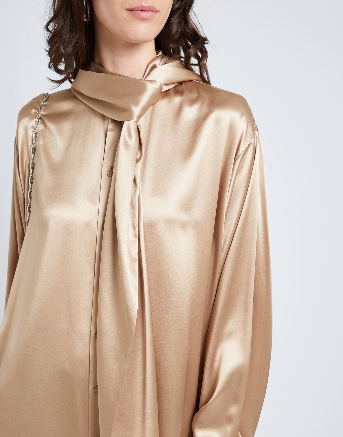 Атлас, без аппликаций, одноцветное изделие, вырез галстук-бабочка, длинные рукава, манжеты на пуговицах, застежка на пуговицы, без карманов, рубашка