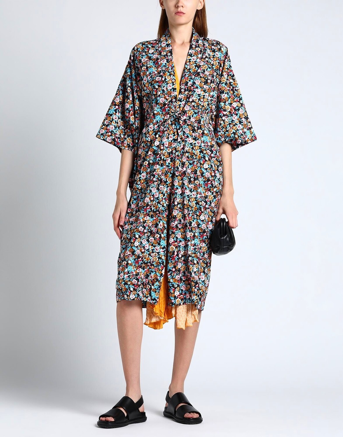 Сатин, креп, кружево, цветочный дизайн, глубокий вырез, длинные рукава, без подкладки, без карманов, платье
