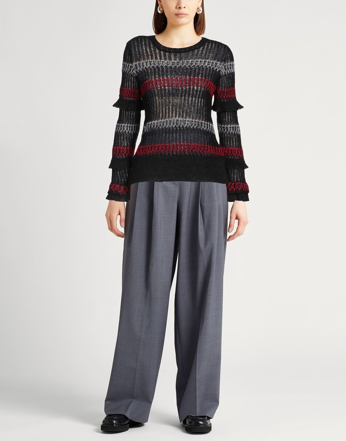 Трикотаж, средней плотности, без аппликаций, в полоску, круглый вырез, длинные рукава, без карманов, ручная стирка или химчистка, не отбеливать, не сушить в стиральной машине, небольшой тираж этой марки
