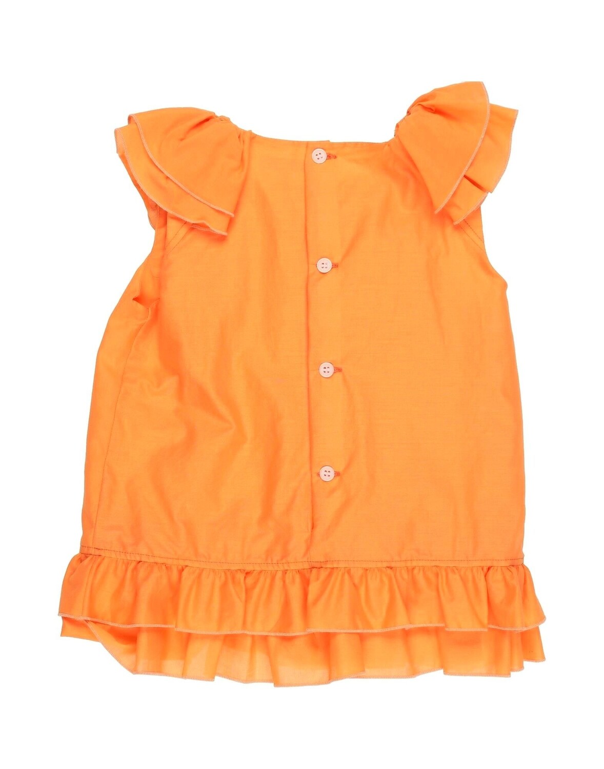 Полотняное переплетение, оборки, одноцветное изделие, круглый вырез, короткие рукава, стирка при 30°C, химическая чистка, нельзя отбеливать, нельзя сушить в стиральной машине, гладить при температуре не выше 110°C