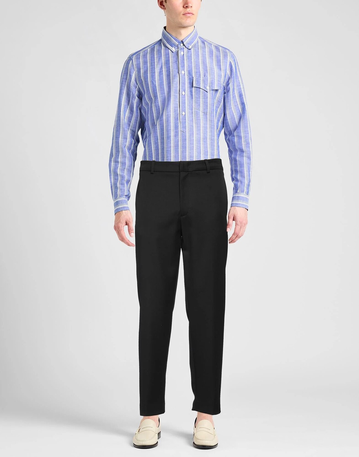 Брюки строгого кроя, саржа, вышитый логотип, одноцветное изделие, средняя посадка, зауженные брючины, стандартный крой, застежки на крючки, застежка-молния, прорезные карманы, карманы с клапанами, химчистка, нельзя отбеливать, нельзя сушить в стиральной машине