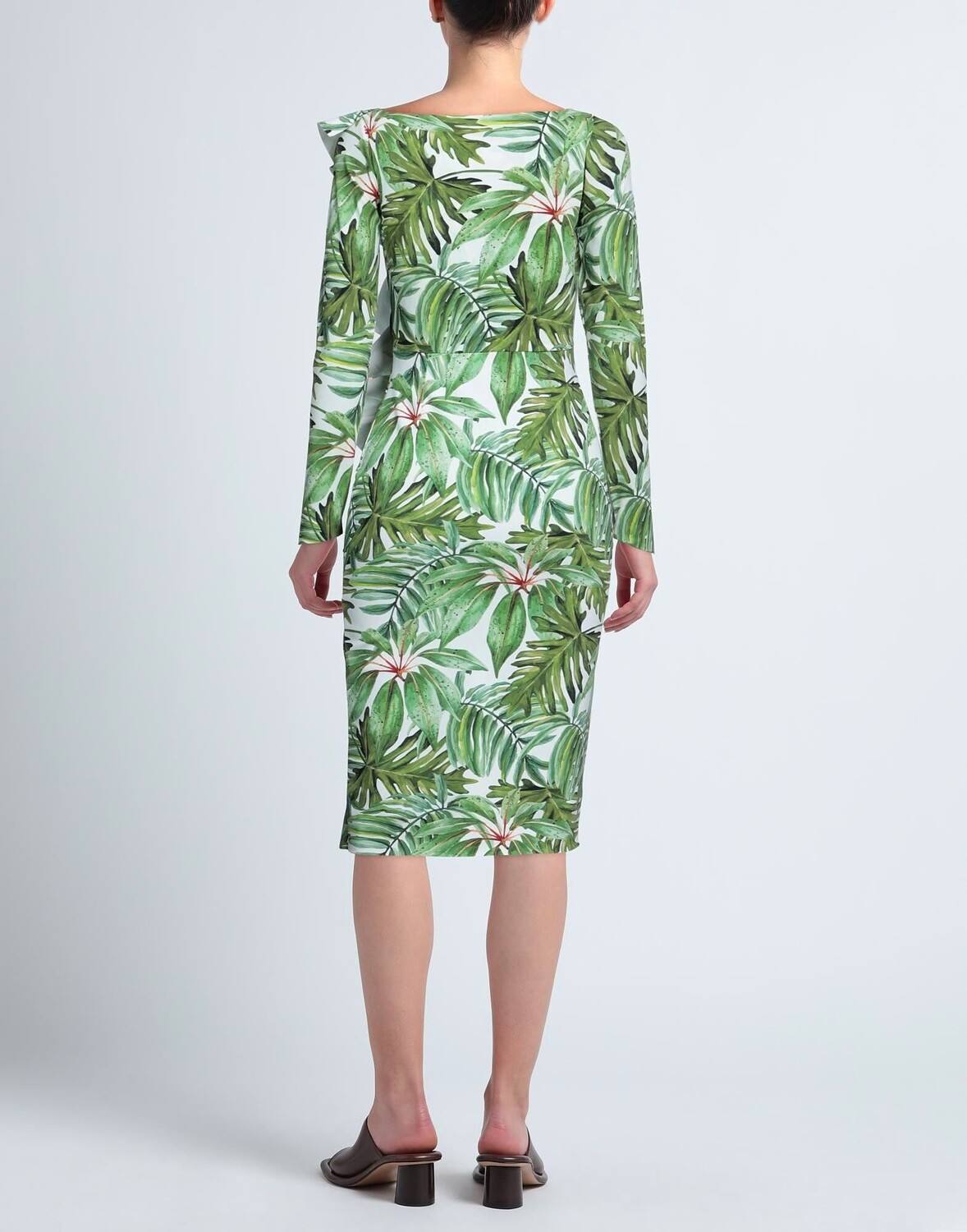 Аквалане, оборки, цветочный принт, овальный вырез, длинные рукава, без карманов, стрейч, платье