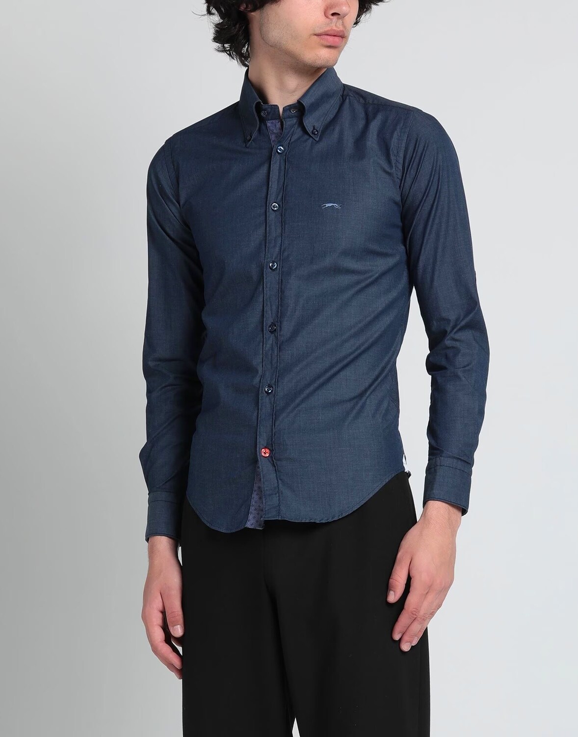 Полотняное переплетение, логотип бренда, контрастные аппликации, двухцветный вариант, воротник на пуговицах, длинные рукава, манжеты на пуговицах, застежка на пуговицы, без карманов, стрейч