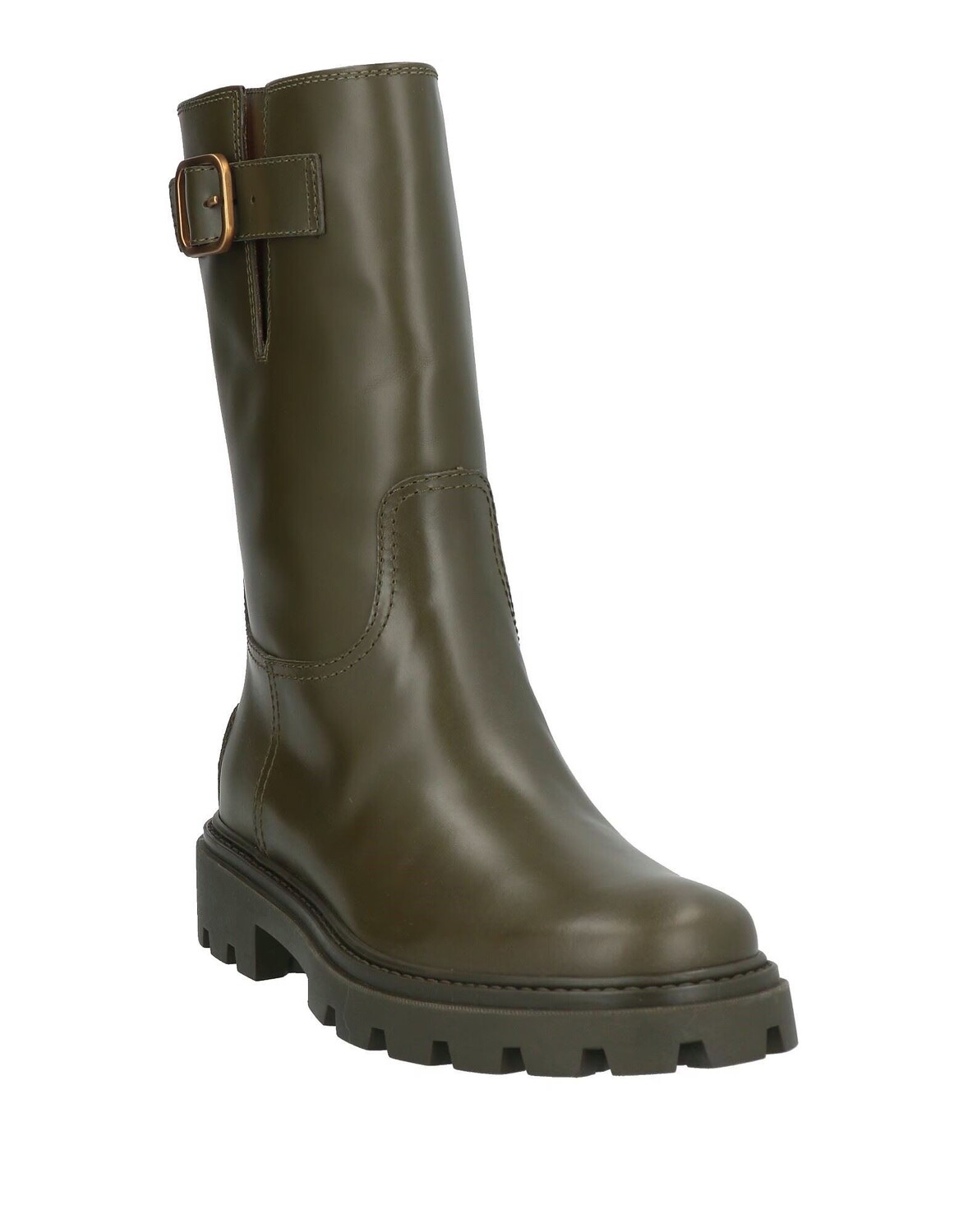 Полированная кожа, логотип бренда, одноцветное изделие, кожаная подкладка, застежка на пряжке, круглый носок, квадратный каблук, рифленая подошва, содержит нетекстильные части животного происхождения, массивные ботинки