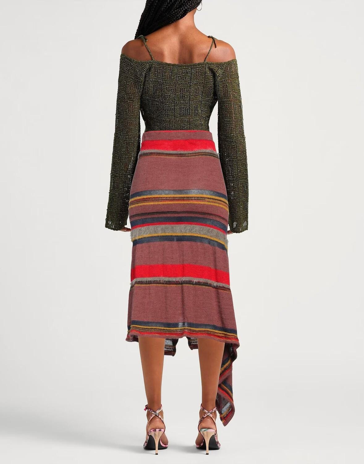 Асимметричная юбка, трикотажная, с начесом, легкий трикотаж, присборенная, в полоску, на талии на резинке, без подкладки, без карманов, ручная стирка или химчистка, не отбеливать, не сушить в стиральной машине