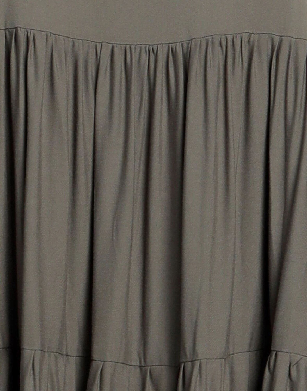 Тканое, присборенное, однотонное, круглый вырез, рукава 3/4, эластичное, расклешенное платье