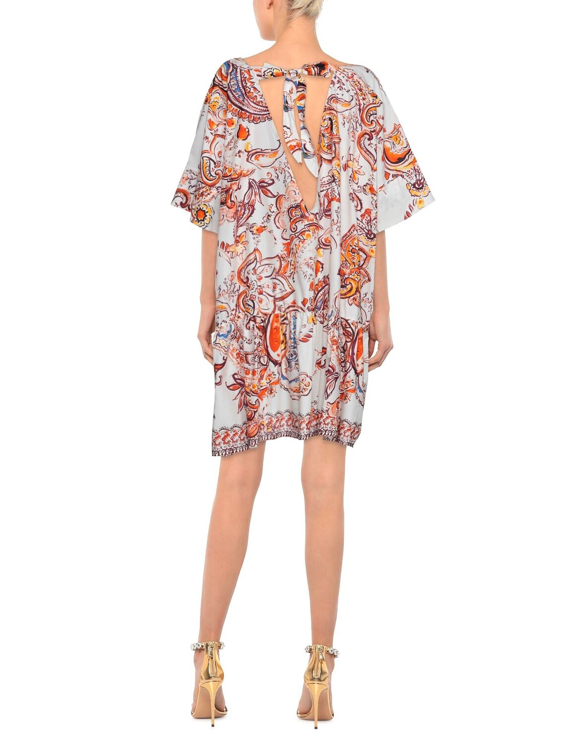 Синтетическое волокно, присборки, цветочный принт, вырез галстук-бабочка, короткие рукава, без подкладки, множество карманов, кафтан