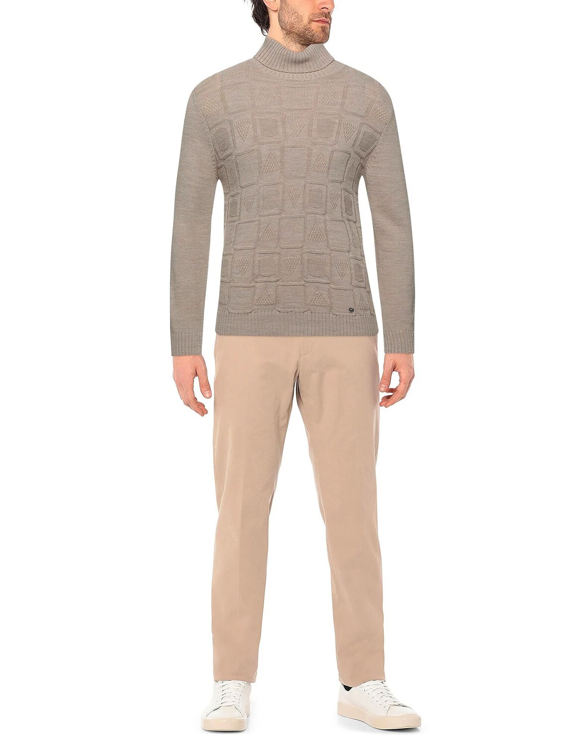 Трикотаж, легкий трикотаж, меланж, логотип бренда, одноцветное изделие, водолазка, длинные рукава, без карманов