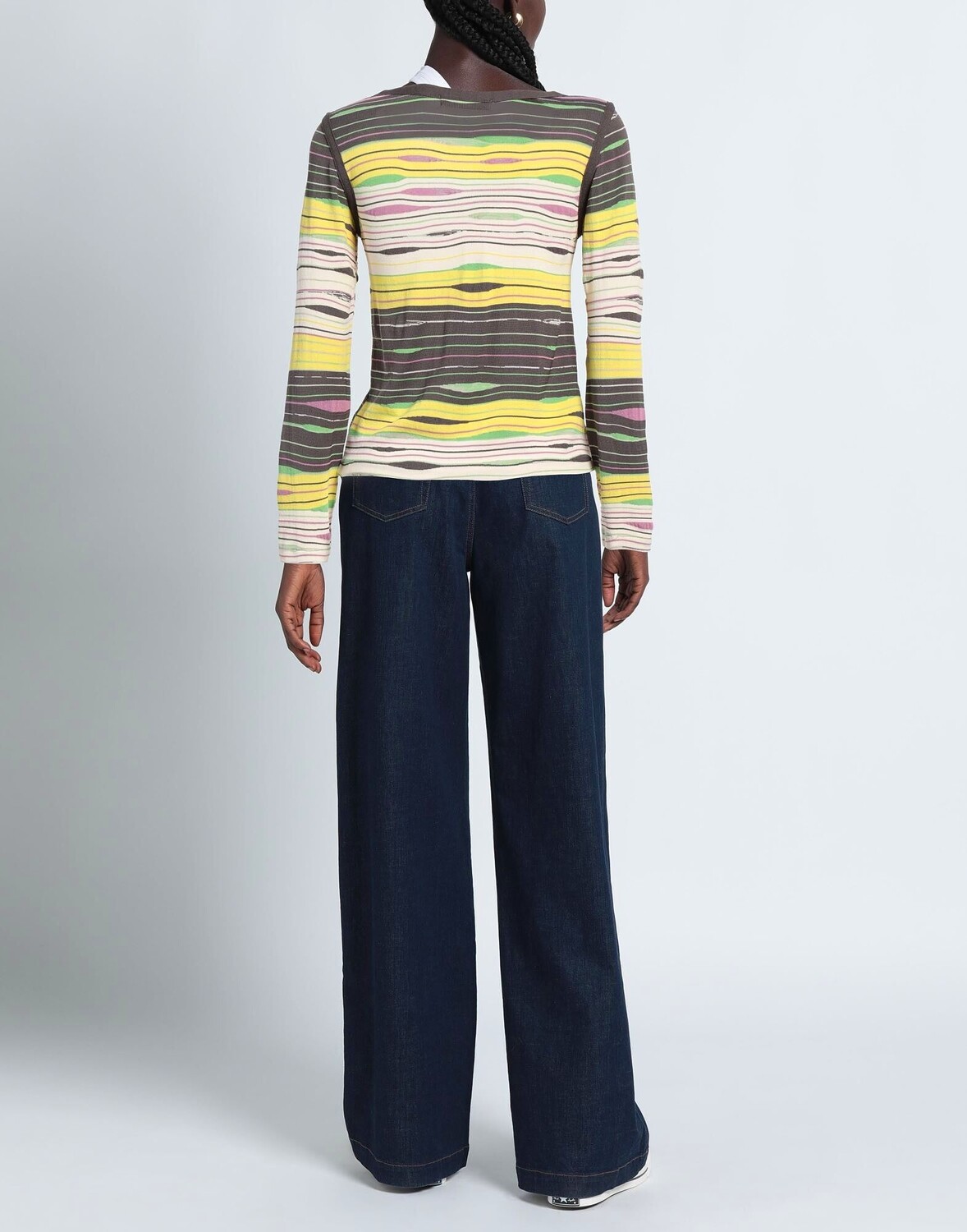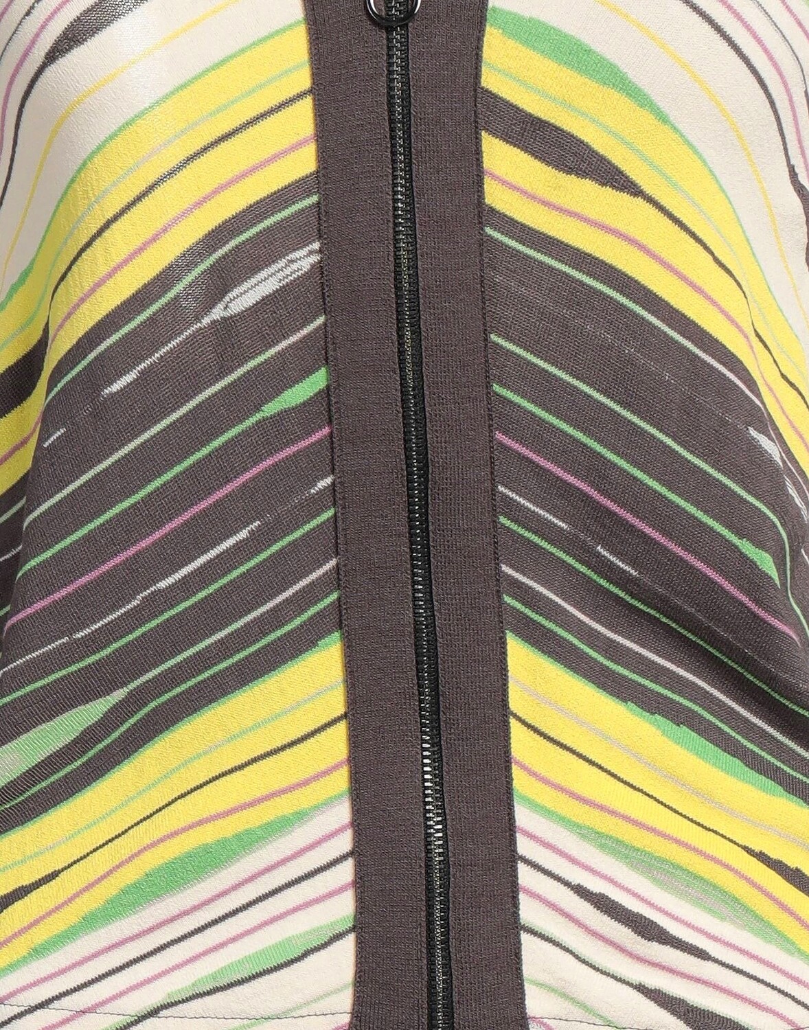Трикотаж, легкая вязка, в полоску, без аппликаций, длинные рукава, застежка-молния, ручная стирка или химчистка, не отбеливать, не сушить в стиральной машине.