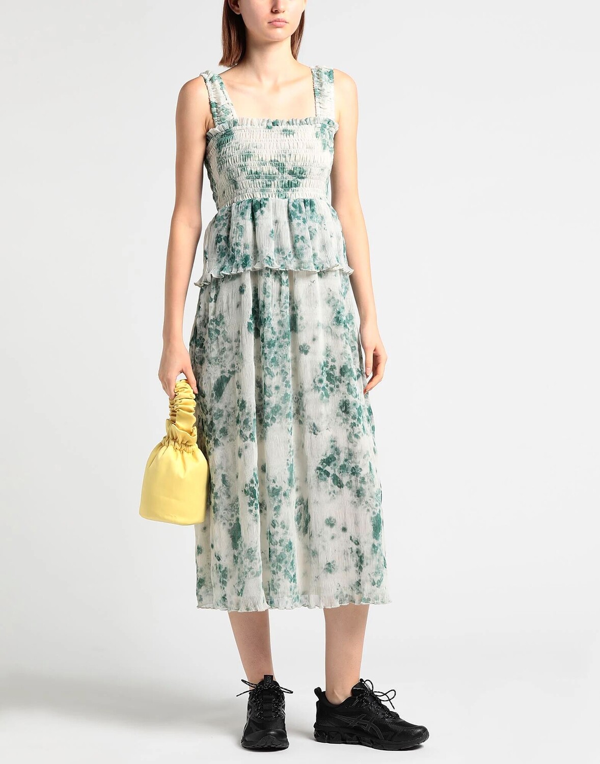 Креп, многоярусное, присборенное, цветочный принт, круглый вырез, без рукавов, частично на подкладке, машинная стирка, нельзя отбеливать, сушить в стиральной машине, нельзя гладить, расклешенное платье