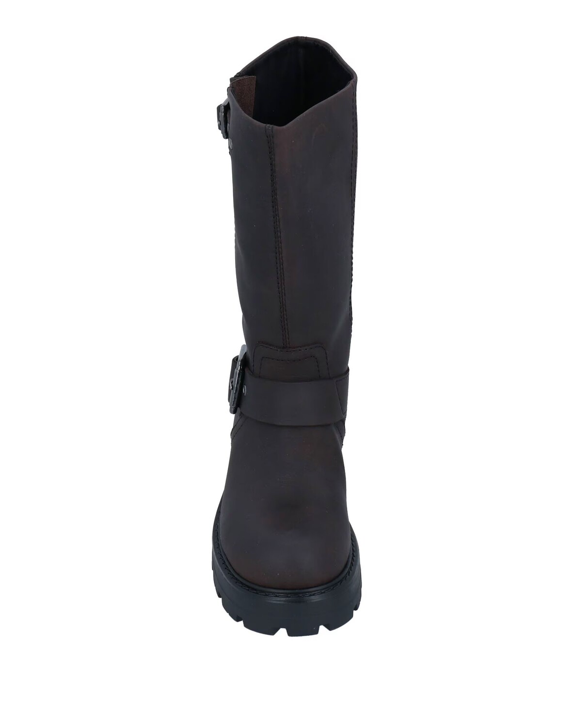Кожа, пряжка, одноцветное изделие, внутренняя поверхность из ткани, скругленный носок, квадратный каблук, резиновая подошва с тиснением, содержит нетекстильные части животного происхождения, массивные ботинки