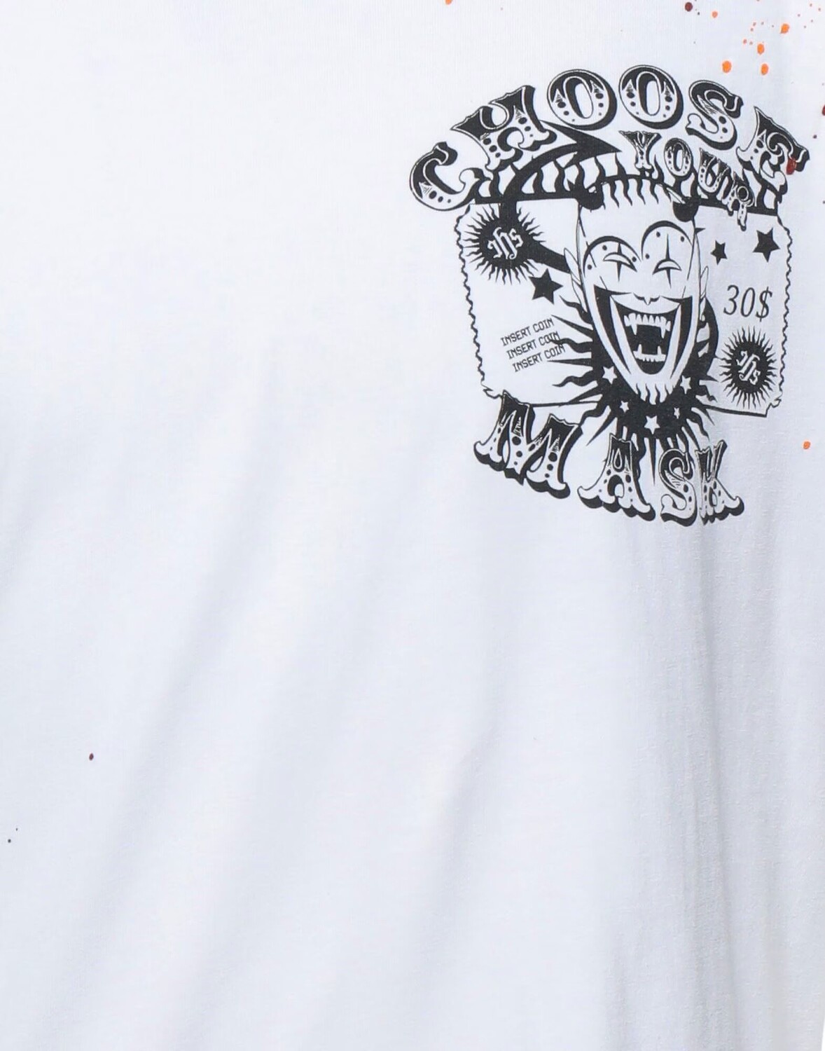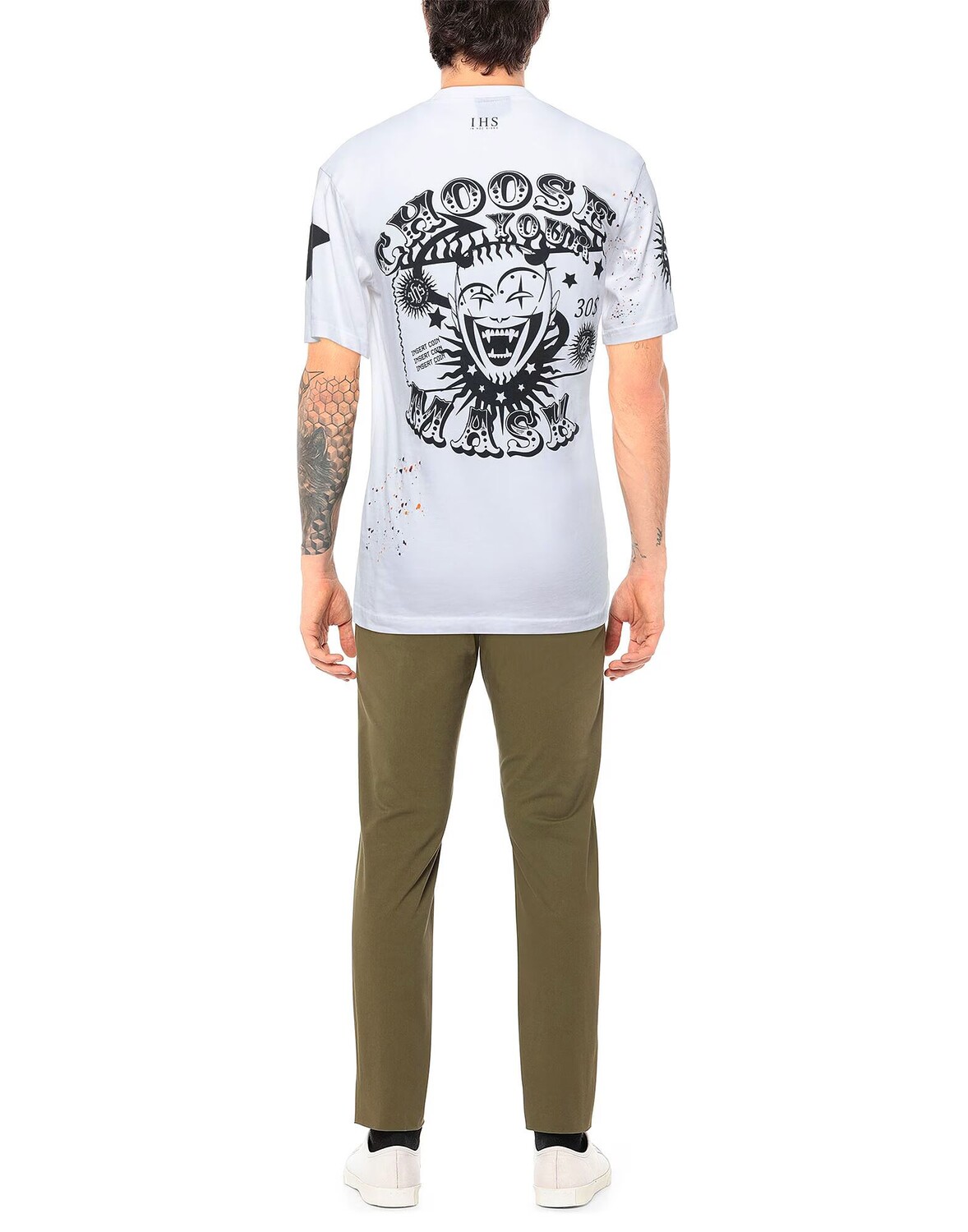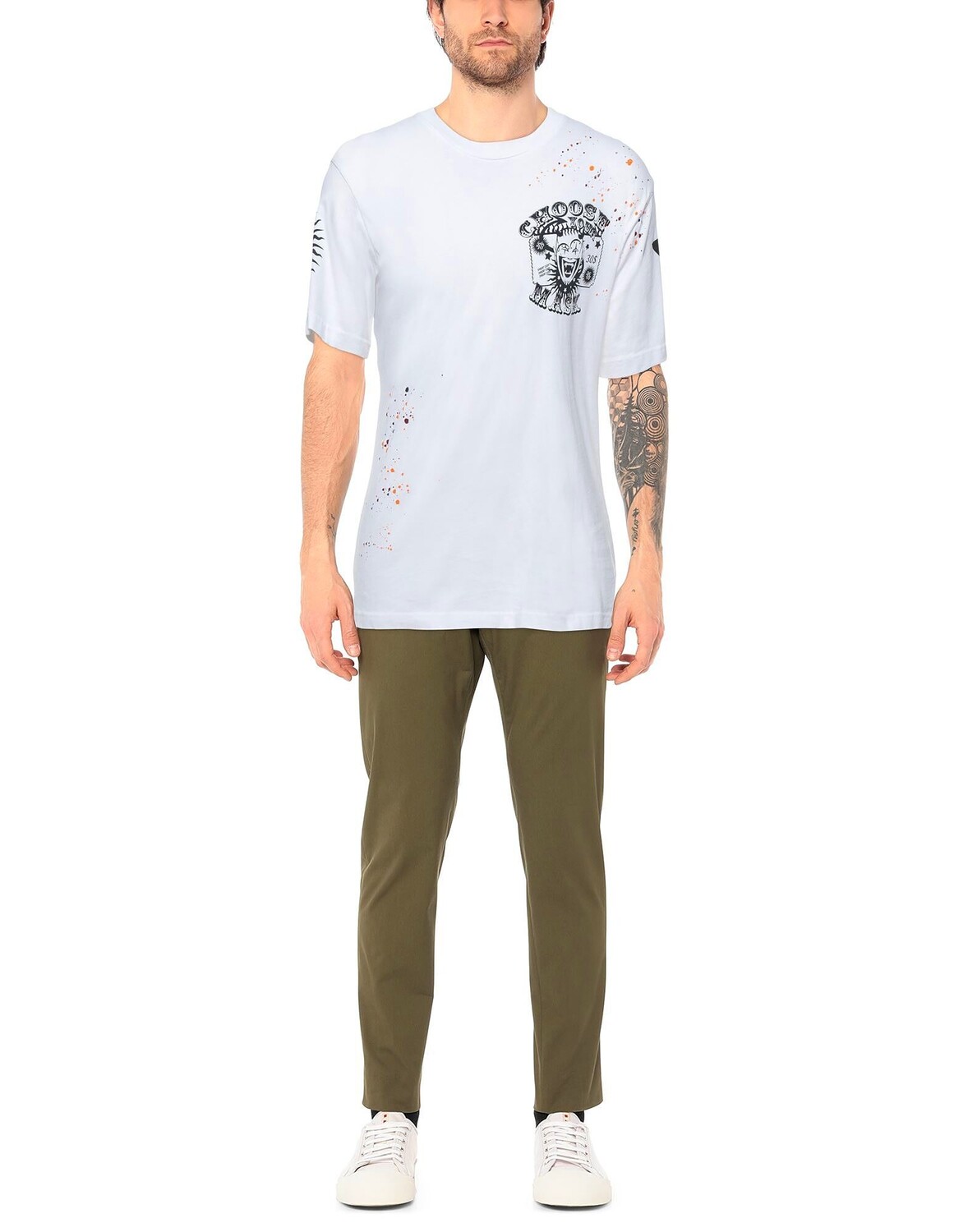 Трикотаж, эффект пятен, логотип бренда, одноцветное изделие с принтом, круглый воротник, короткие рукава, без карманов