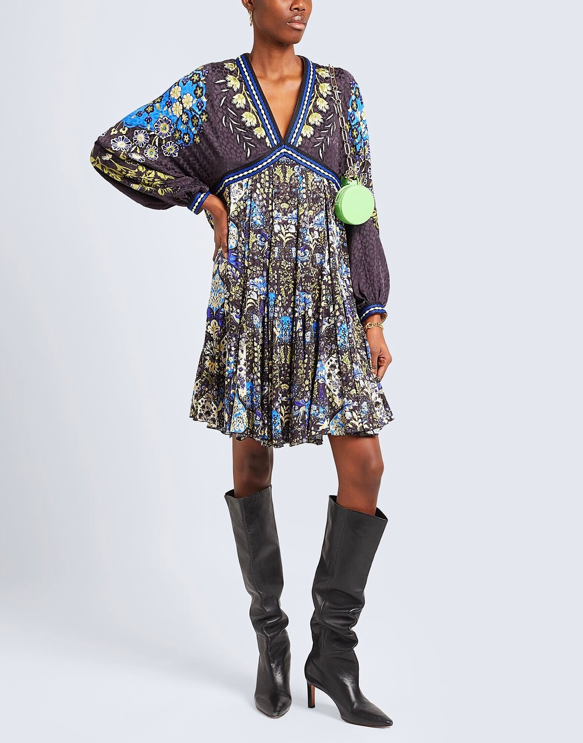Тафта, вышивка, цветочный принт, многоцветное, v-образный вырез, длинные рукава, без подкладки, без карманов, химчистка, нельзя сушить в стиральной машине, не отбеливать, плиссированное платье