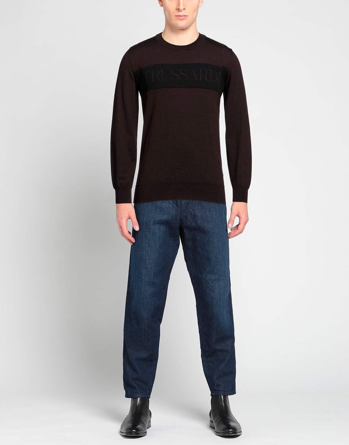 Трикотаж, легкий трикотаж, логотип бренда, двухцветное изделие, круглый воротник, длинные рукава, без карманов