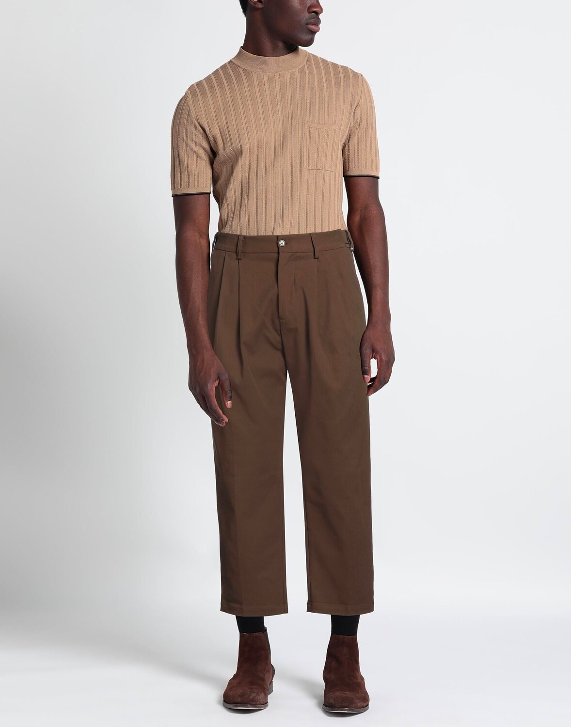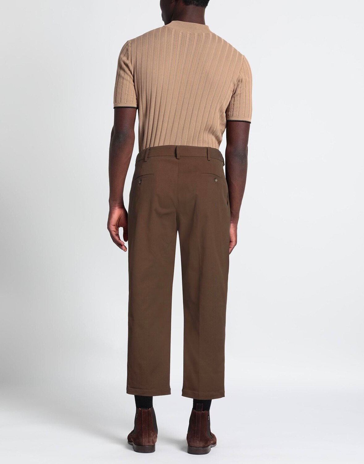 Саржа, без аппликаций, одноцветное изделие, завышенная талия, зауженные брючины, приталенный крой, застежка-молния, пуговицы, множество карманов, эластичный, машинная стирка, нельзя отбеливать, нельзя сушить в стиральной машине, укороченный, брюки-чиносы