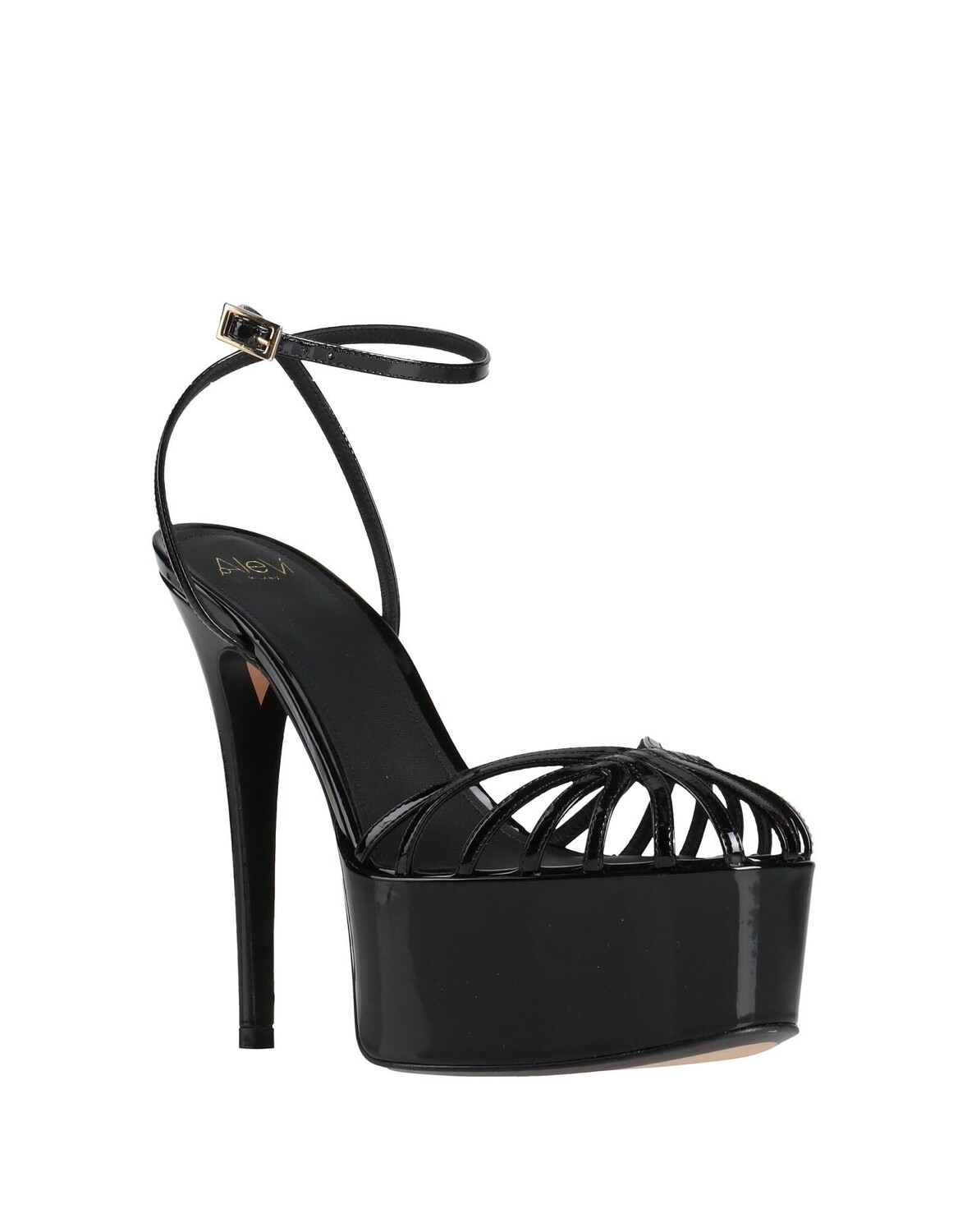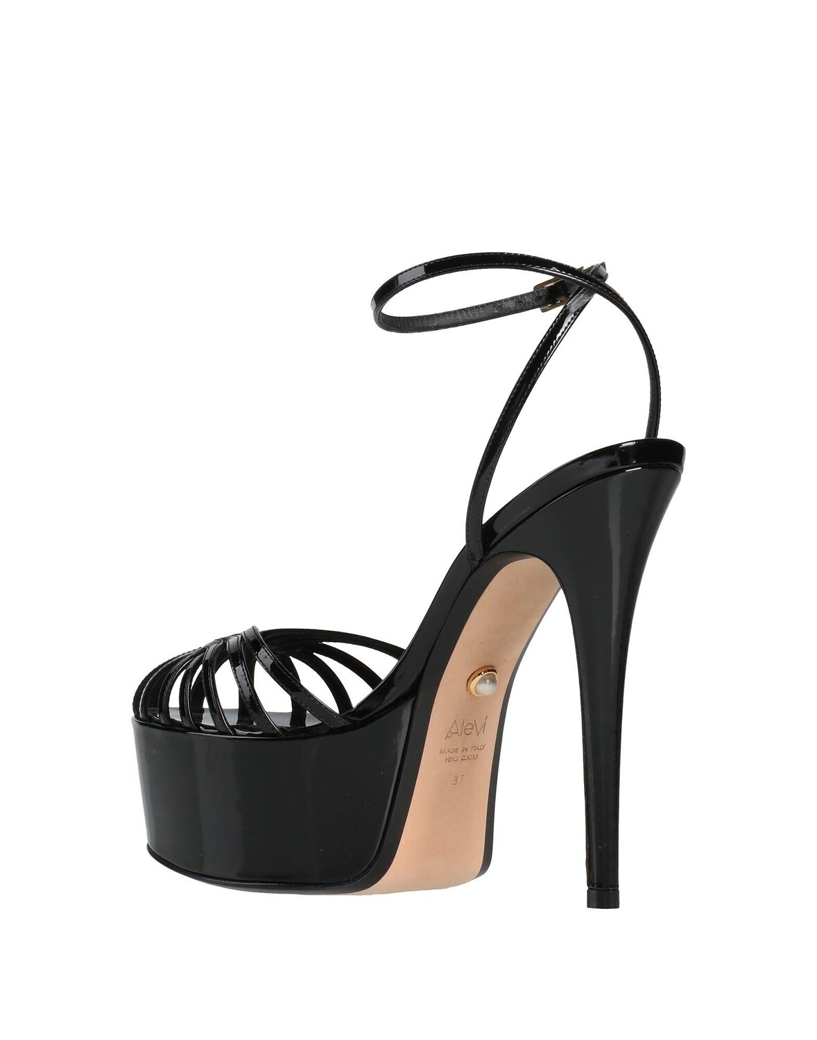 Кожа, лаковый эффект, без аппликаций, одноцветное изделие, кожаная подкладка, ремешок на щиколотке с пряжкой, скругленный носок, каблук-шпилька, обтянутый каблук, кожаная подошва, содержит нетекстильные части животного происхождения, босоножки с ремешком на щиколотке