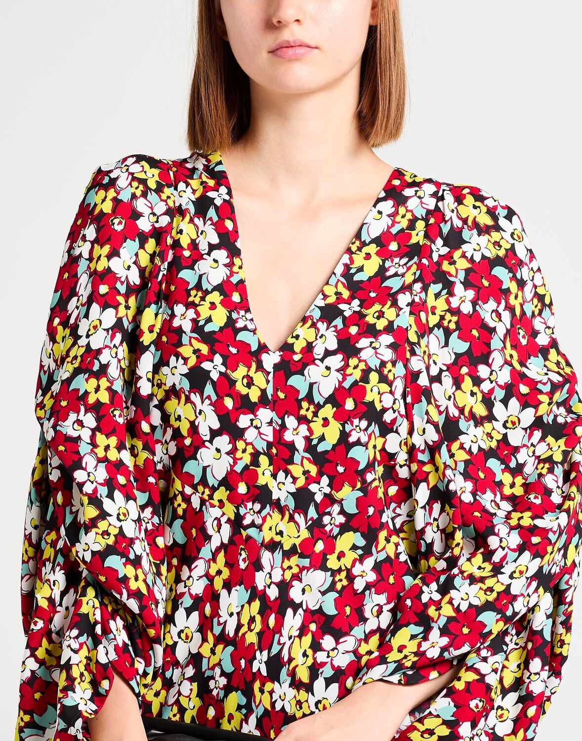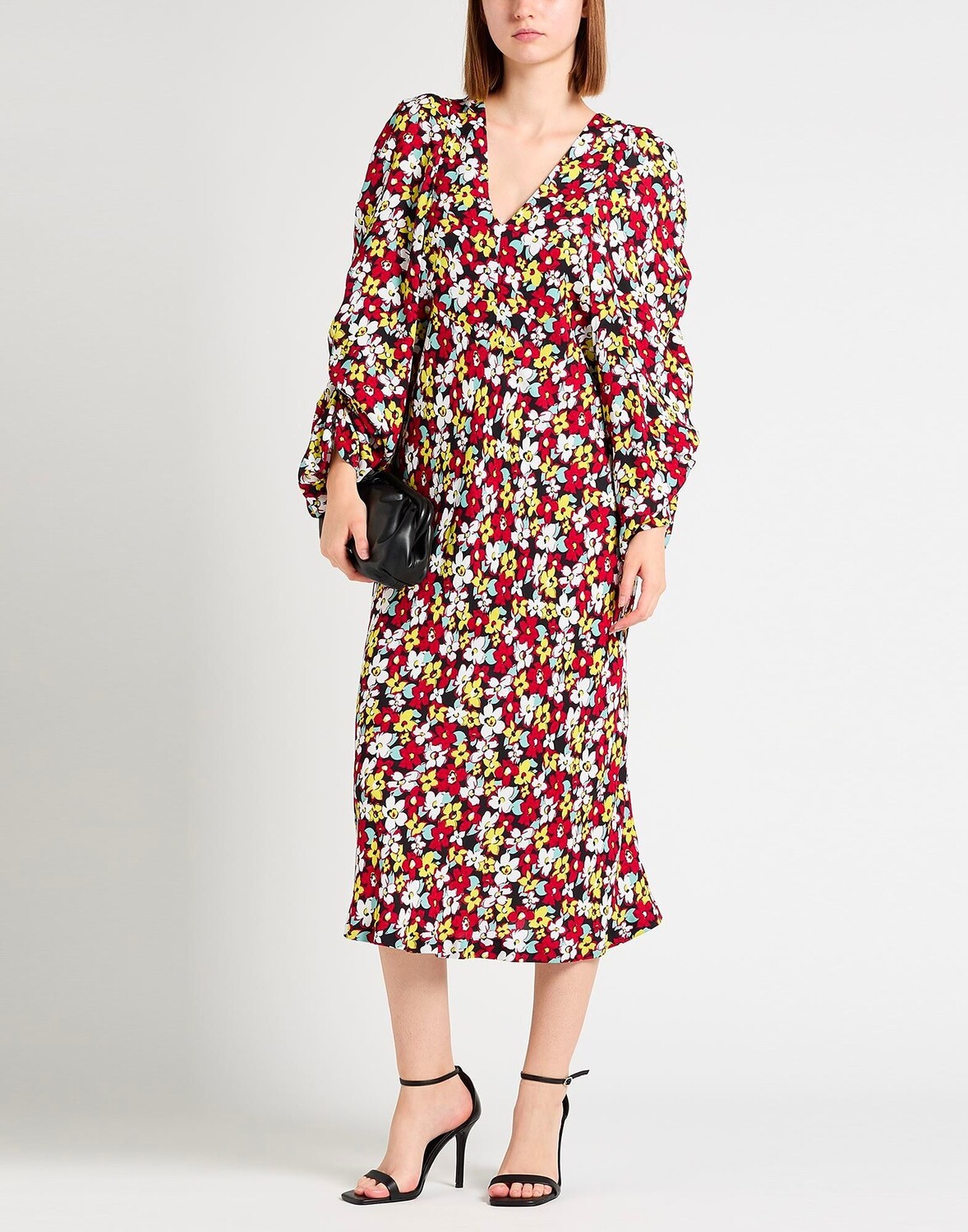 Креп, без аппликаций, цветочный принт, v-образный вырез, длинные рукава, без подкладки, застежка-молния, застежка на крючки, без карманов, химчистка, нельзя отбеливать, нельзя сушить в стиральной машине, платье-клеш
