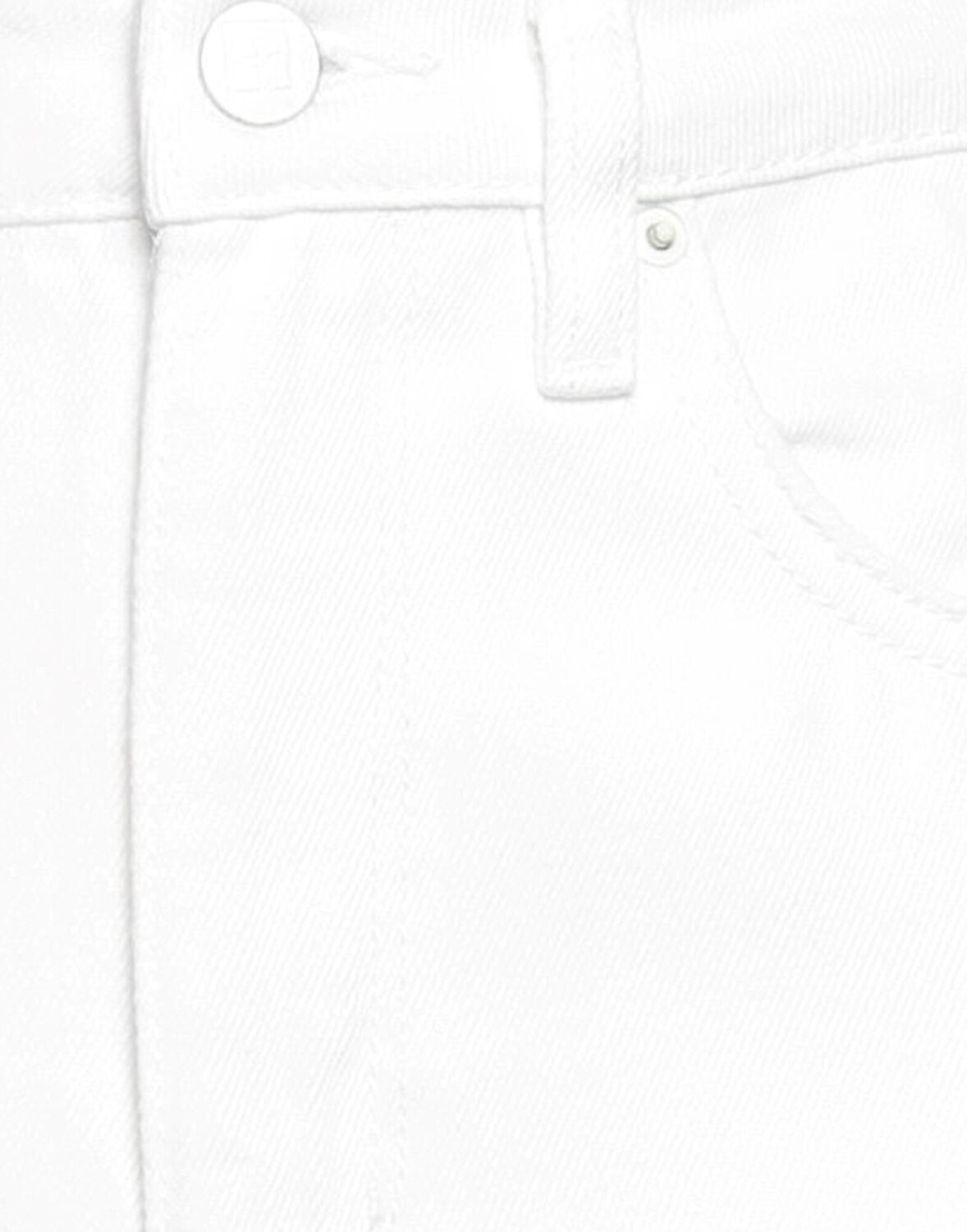 Джинсовая ткань, логотип бренда, одноцветное изделие, цветная расцветка, завышенная талия, зауженные брючины, стандартный крой, 1 пуговица, застежка-молния, пять карманов, модель прямого кроя