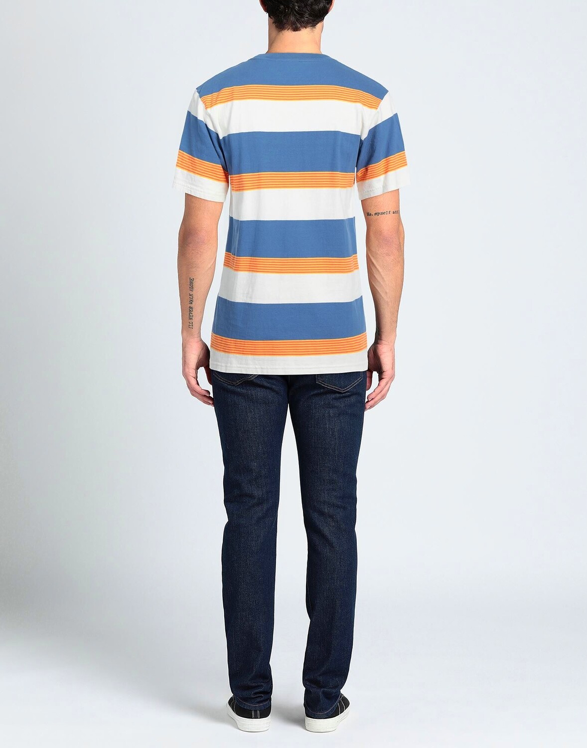 Трикотаж, логотип бренда, полоски, круглый воротник, короткие рукава, без карманов