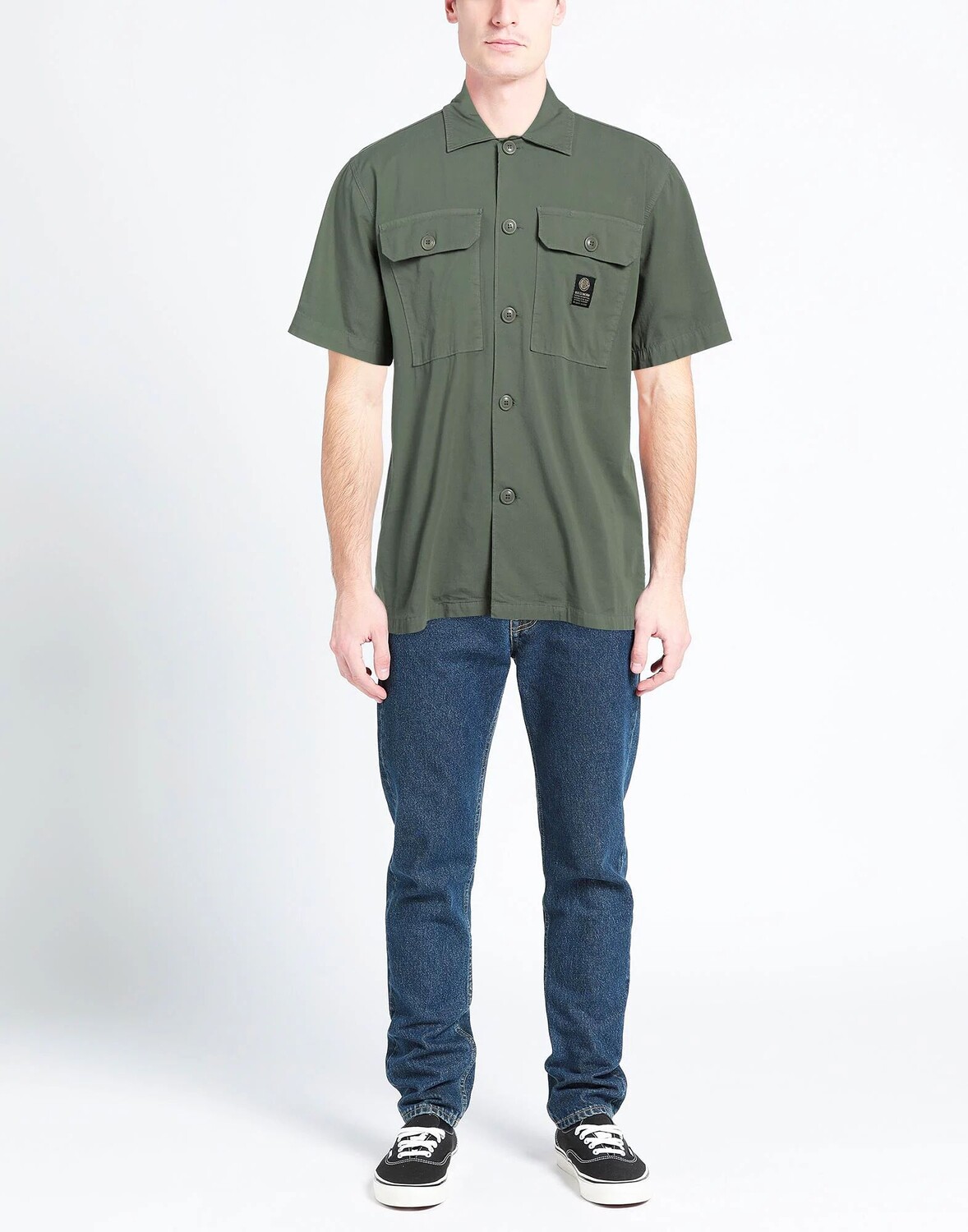 Ткань, логотип бренда, одноцветное изделие, классический воротник, короткие рукава, застежка на пуговицы, два нагрудных кармана, стрейч, верхняя рубашка