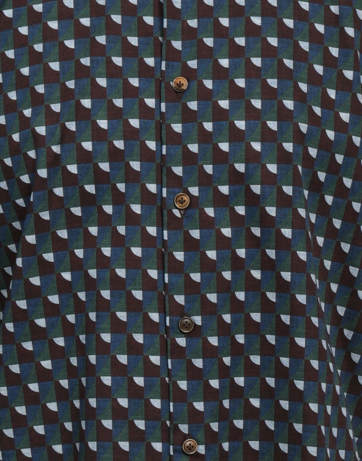 Полотняное переплетение, без аппликаций, разноцветный узор, классический вырез горловины, длинные рукава, манжеты на пуговицах, застежка на пуговицы, без карманов