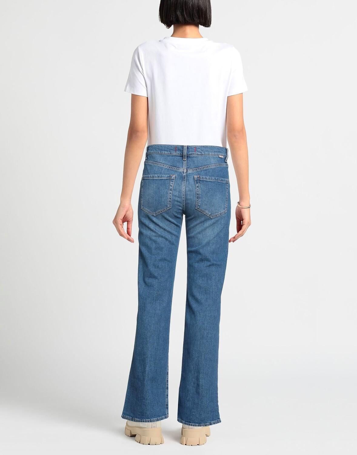 Деним, выцветший, логотип бренда, одноцветное изделие, средняя степень стирки, завышенная талия, шлевки для ремня, расклешенный крой, классический крой, застежка-молния, 1 пуговица, пять карманов, стрейч, модель ботфортного кроя