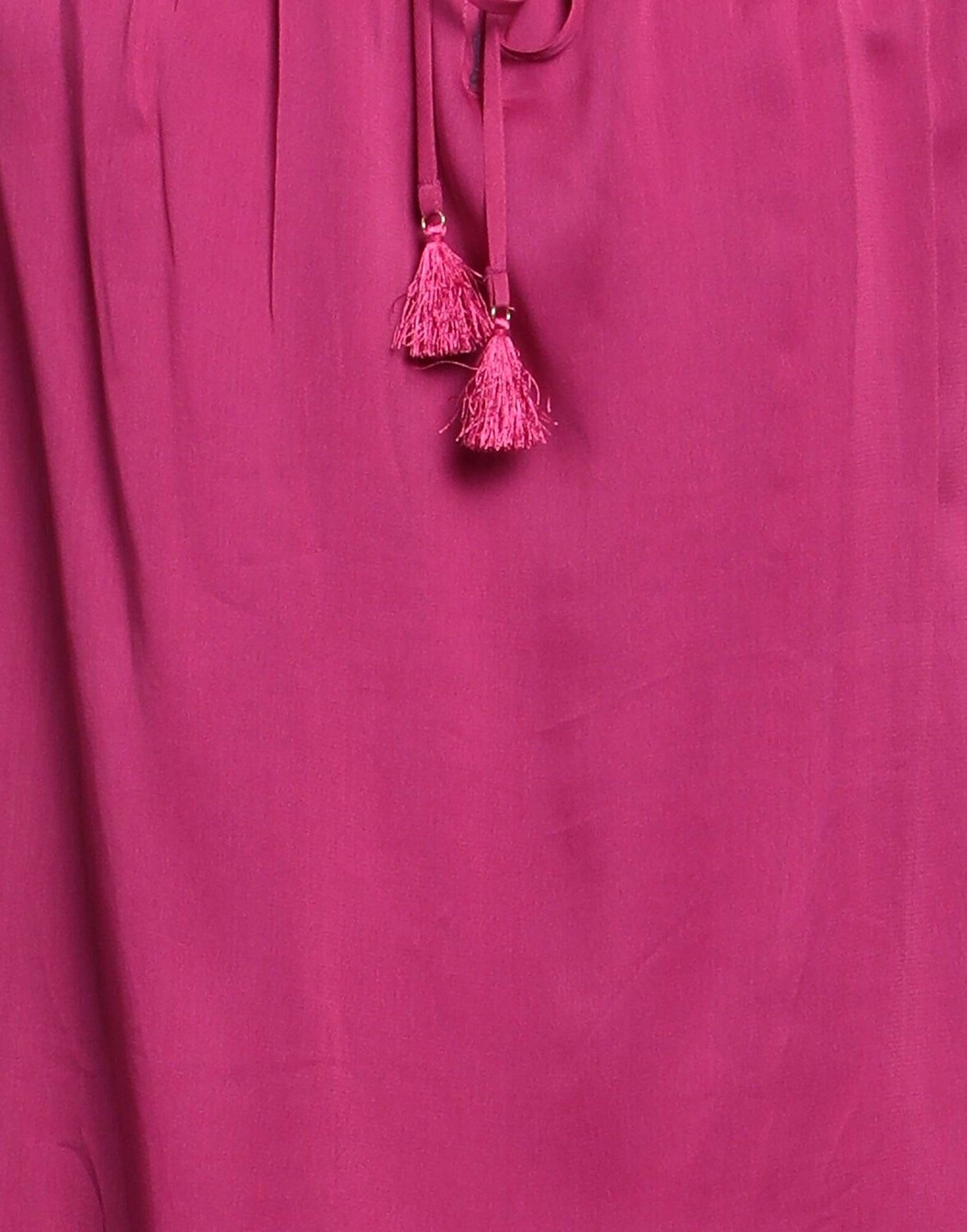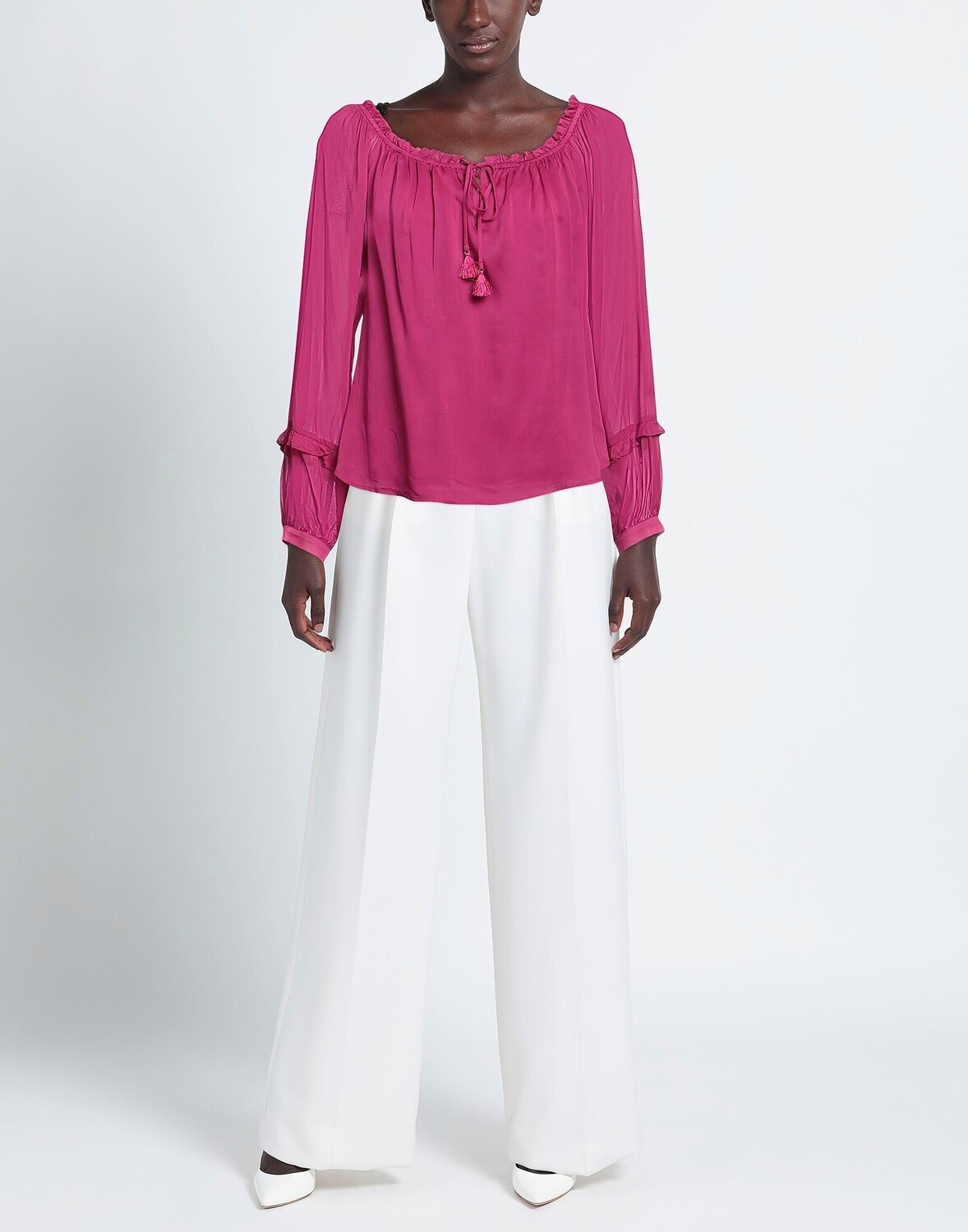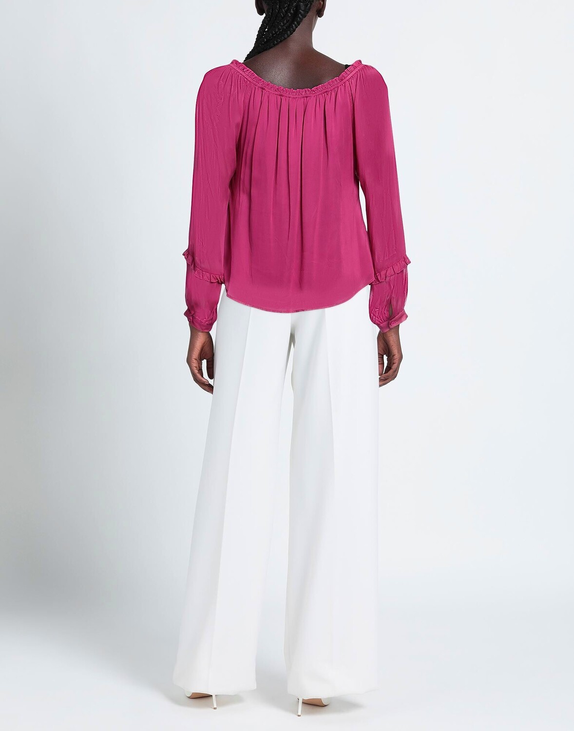 Креп, оборки, одноцветное изделие, круглый вырез, длинные рукава, топ