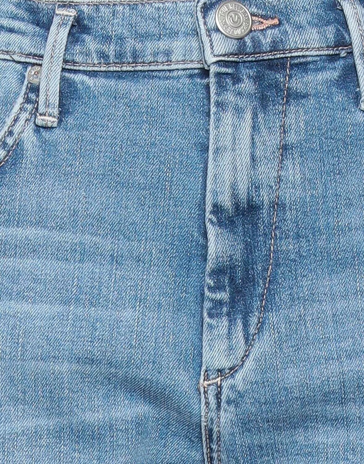 Деним, выцветший, логотип бренда, одноцветное изделие, средняя степень стирки, завышенная талия, зауженные брючины, стандартный крой, 1 пуговица, множество карманов, джинсы Mom