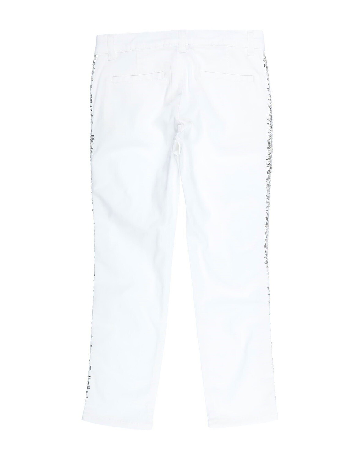 Полотняное переплетение, пайетки, полоски по боковым швам, одноцветное изделие с аппликациями, шлевки для ремня, 1 пуговица, застежка-молния, множество карманов, эластичный, стирать при 30°C, не подвергать химчистке, не отбеливать, нельзя сушить в стиральной машине, гладить при 110 °c макс, штаны