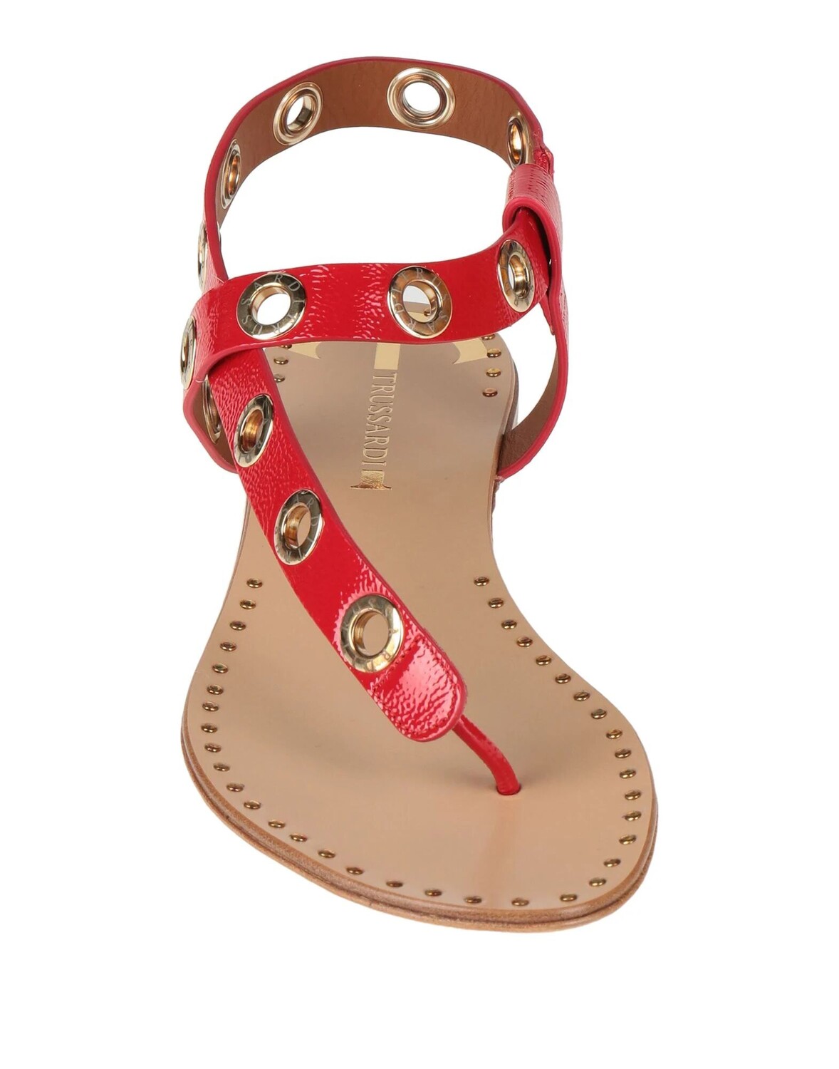 Кожа наппа, с эффектом лака, металлические аппликации, однотонный цвет с аппликациями, кожаная подкладка, эластичные канавки, скругленный носок, без каблука, кожаная подошва, содержит нетекстильные части животного происхождения, босоножки с ремешком на щиколотке, маленького размера