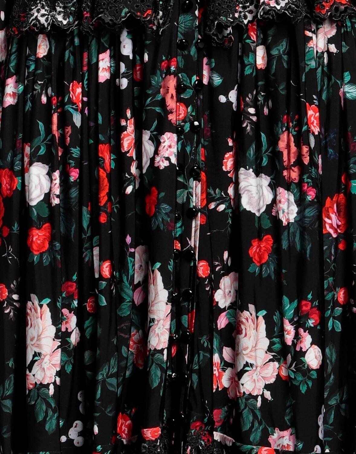 Джерси, кружево, ярусы, оборки, цветочный дизайн, разноцветный узор, овальный вырез, длинные рукава, без подкладки, пуговицы, без карманов, стрейч, расклешенный фасон