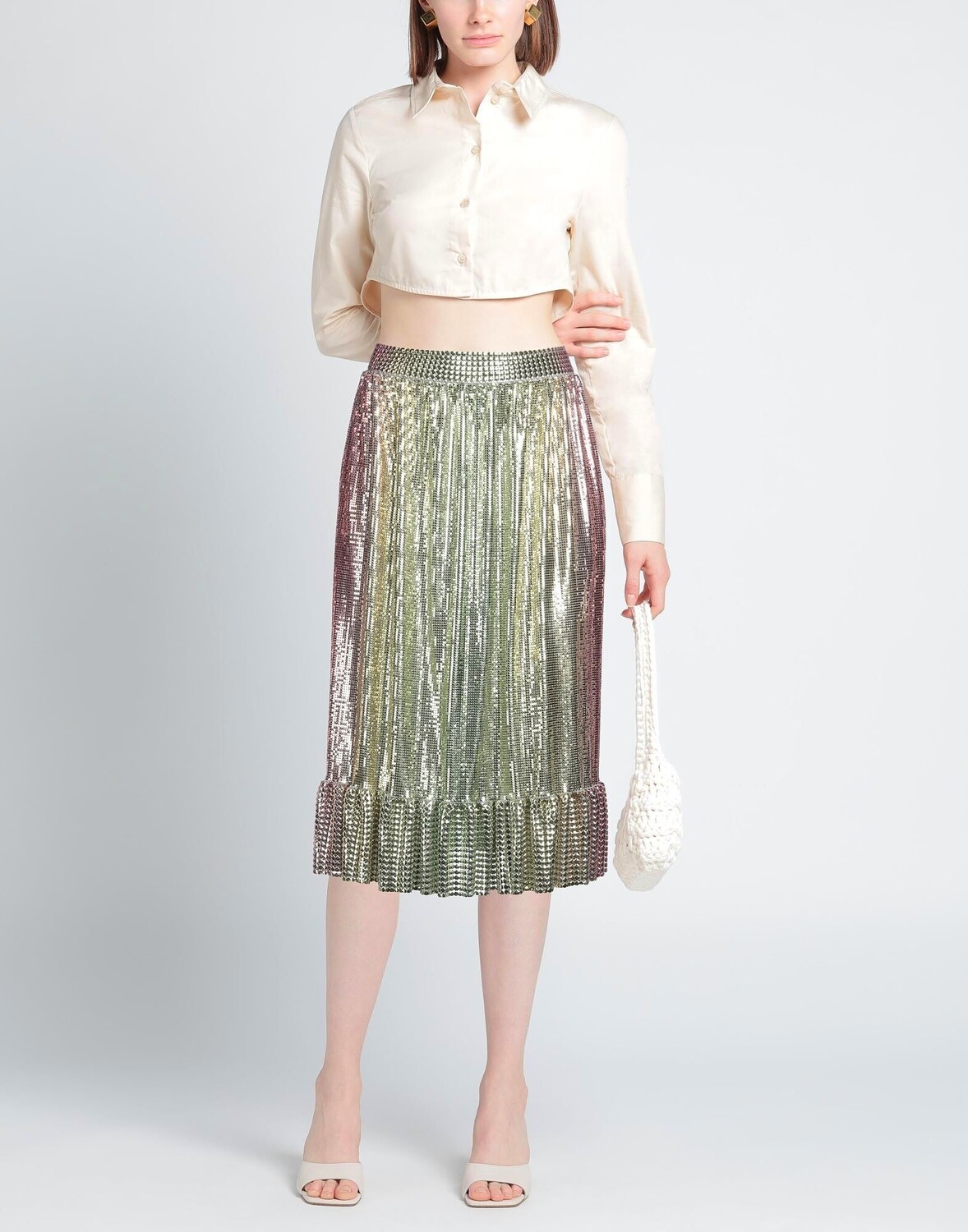 Металл, металлик, кристаллы, многоцветный, без подкладки, кнопки, без карманов, ручная стирка, нельзя сушить в стиральной машине, нельзя отбеливать, нельзя гладить, юбка-карандаш