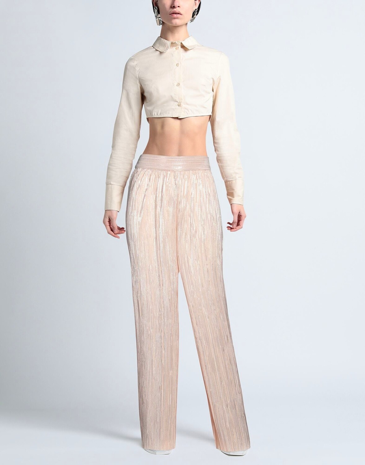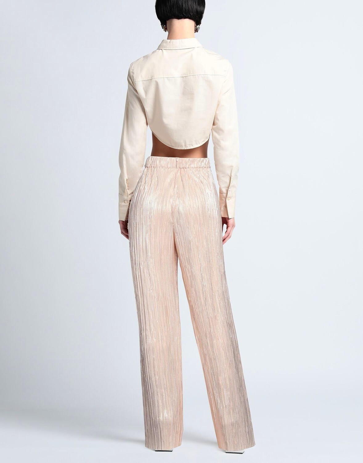 Сатин, плиссе, блестки, двухцветный, завышенная талия, широкие штанины, удобная посадка, застежка-молния, без карманов, брюки