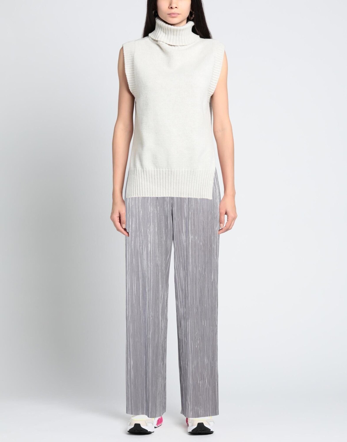 Атлас, плиссе, блестки, двухцветный, завышенная талия, широкие штанины, удобная посадка, застежка-молния, без карманов, брюки