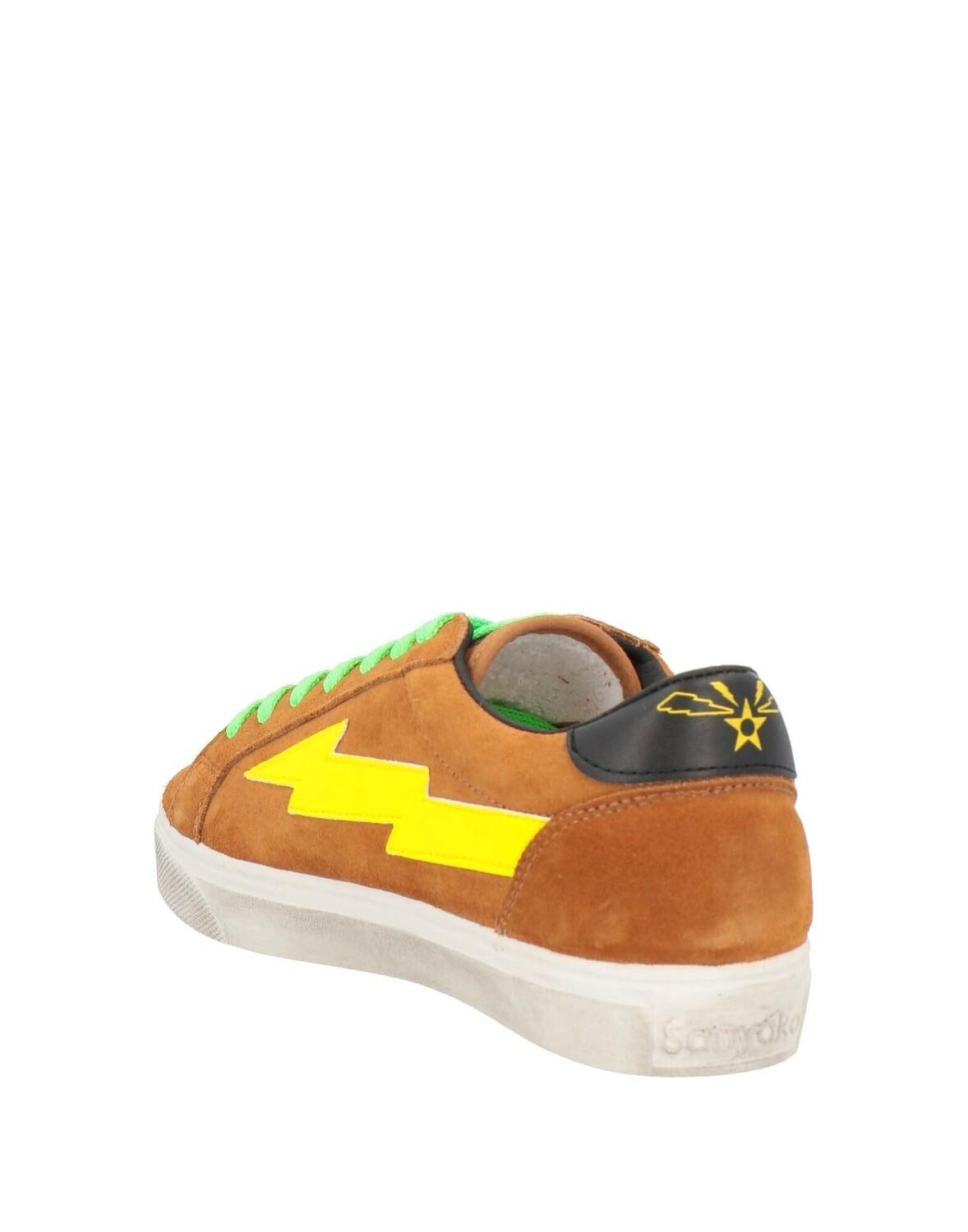 Кожа, эффект замши, логотип бренда, разноцветный рисунок, кожаная подкладка, шнуровка, скругленный носок, без каблука, резиновая подошва с тиснением, содержит нетекстильные части животного происхождения, низкие кеды и кроссовки