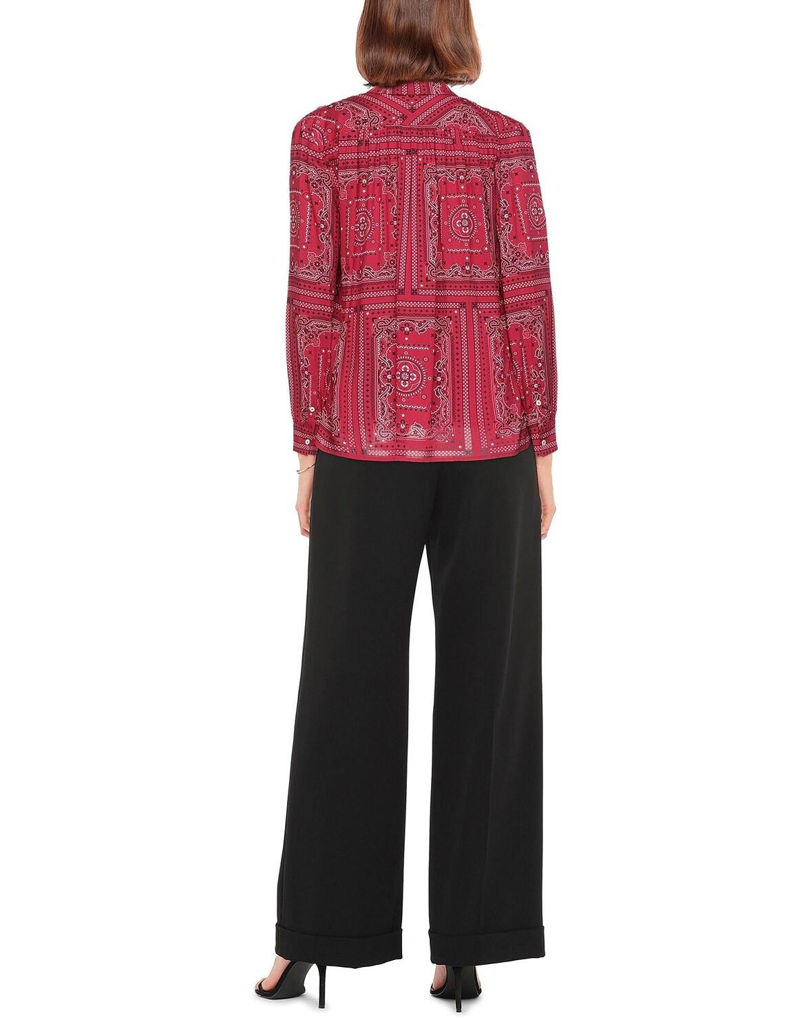 Полотняное переплетение, без аппликаций, разноцветный узор, застежка спереди, пуговицы, длинные рукава, манжеты на пуговицах, классический вырез горловины, без карманов, содержит нетекстильные части животного происхождения