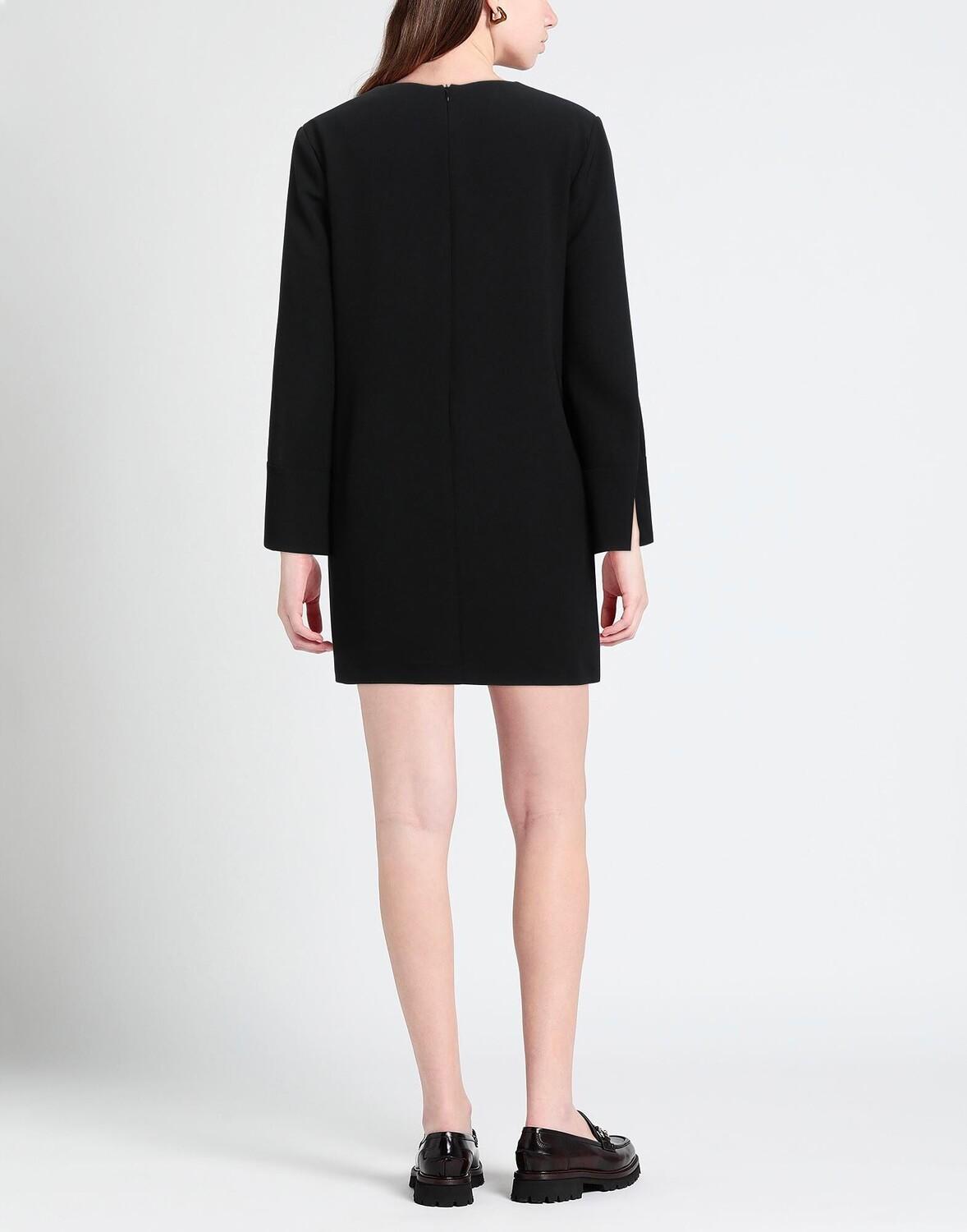 Креп, металлические аппликации, однотонный цвет с аппликациями, v-образный вырез, длинные рукава, полностью на подкладке, застежка-молния, без карманов, эластичный, фасон трапеция