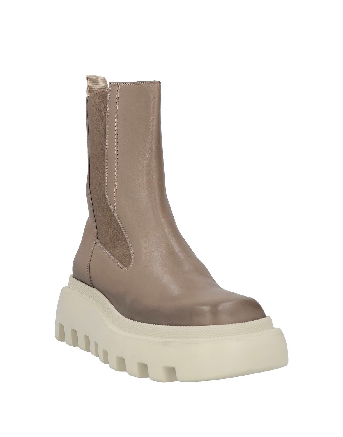Логотип бренда, одноцветное изделие, кожаная подкладка, эластичные выступы, квадратный носок, каблук-танкетка, подошва с ушками, содержит нетекстильные части животного происхождения, полированная кожа, массивные ботинки