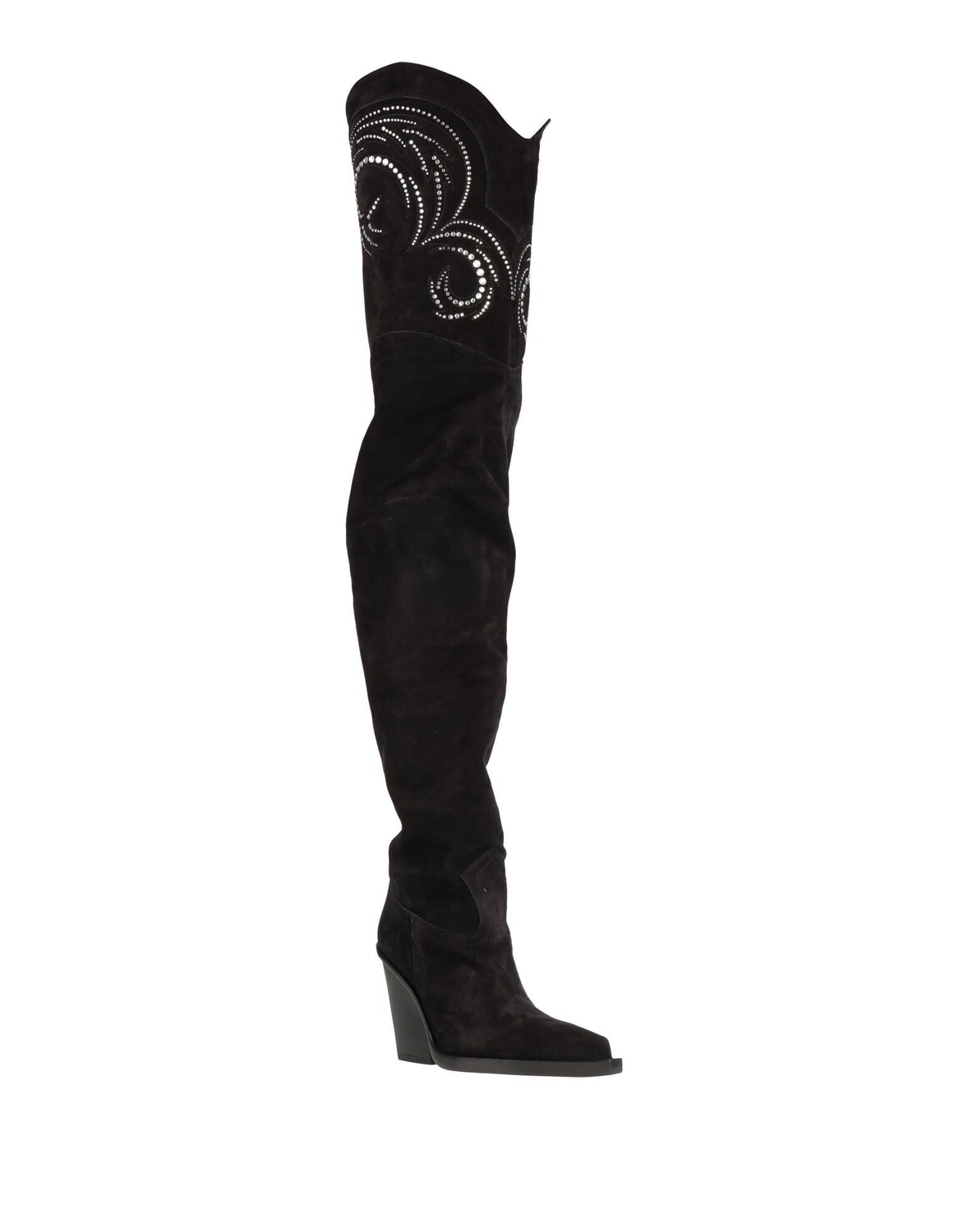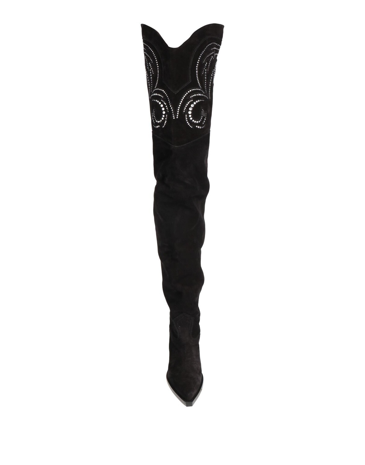 Ковбойские сапоги, замша, кристаллы, одноцветное изделие с аппликациями, подкладка кожаная, острый носок, кубинский каблук, кожаная подошва, содержит нетекстильные части животного происхождения