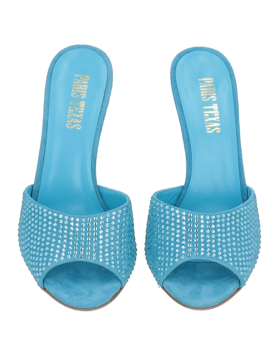 Замша, кристаллы, одноцветное изделие с аппликациями, подкладка из кожи, круглый носок, каблук-шпилька, обтянутый каблук, кожаная подошва, содержит нетекстильные части животного происхождения, шлепанцы