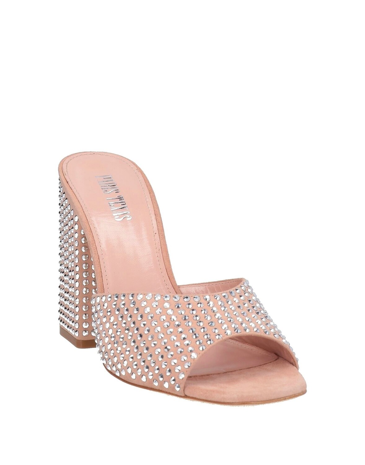 Кожа, эффект замши, стразы, одноцветное изделие, кожаная подкладка, скругленный носок, квадратный каблук, кожаная подошва, содержит нетекстильные части животного происхождения, шлепанцы